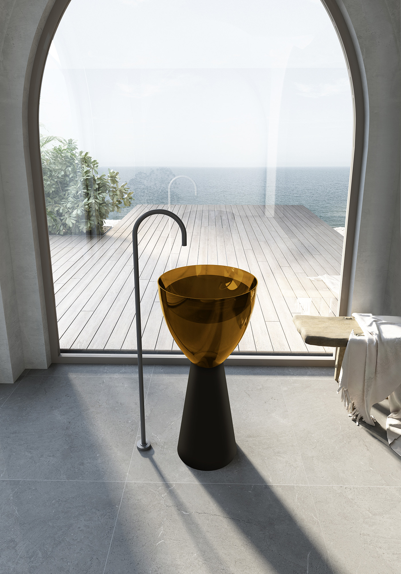 Раковина напольная прозрачная Abber Kristall 45 см AT2703Black-Vesuvian, черный/оливковый