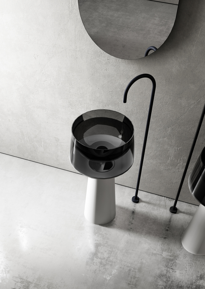 Раковина напольная прозрачная Abber Kristall 50 см AT2706White-Onyx, белый/черный