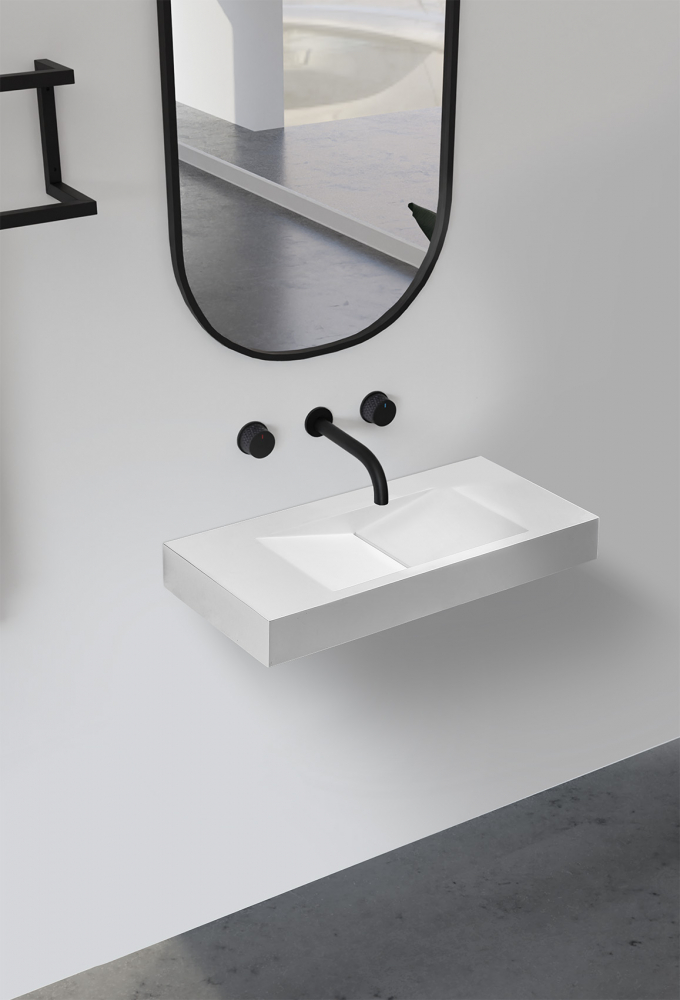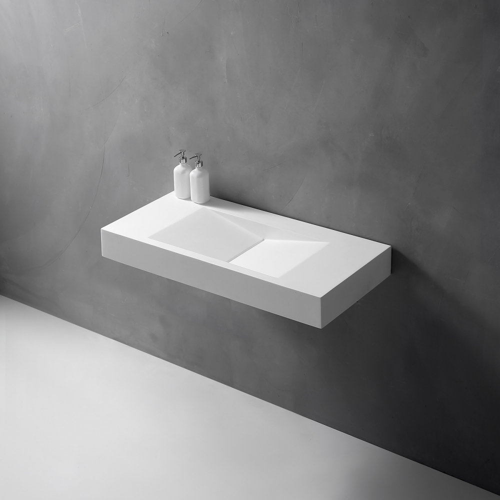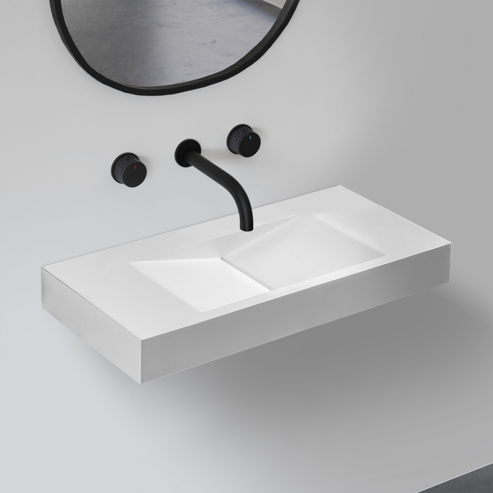 Раковина подвесная Abber Stein 100 см AS2641 с донным клапаном, цвет белый матовый.