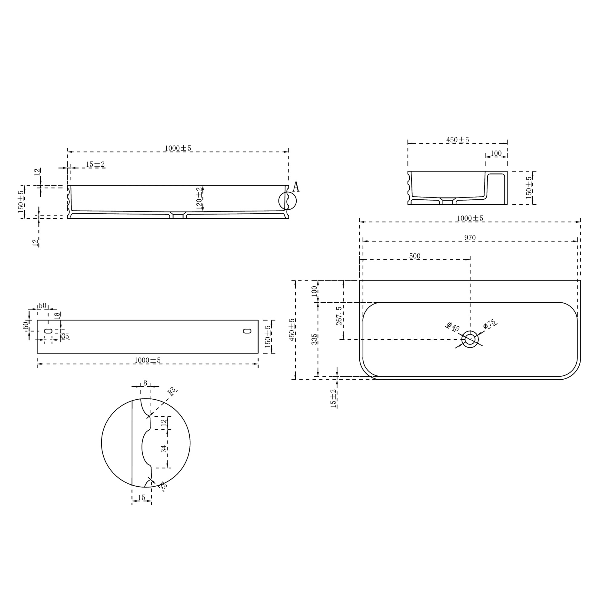 Раковина подвесная Abber Stein 100 см AS2651-1.0, материал искусственный камень, цвет белый матовый.