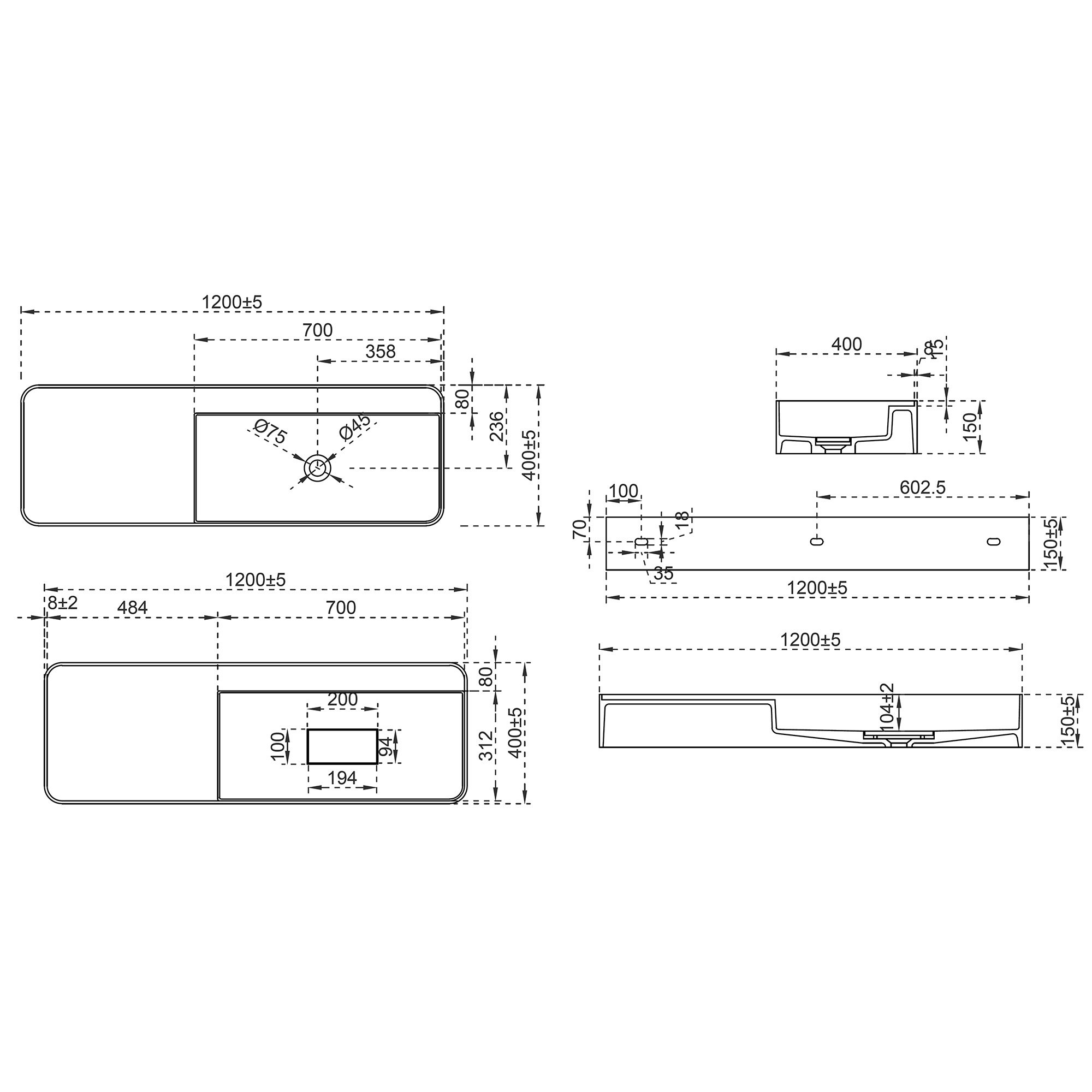 Раковина подвесная Abber Stein 120 см AS2627-1.2, цвет белый матовый.