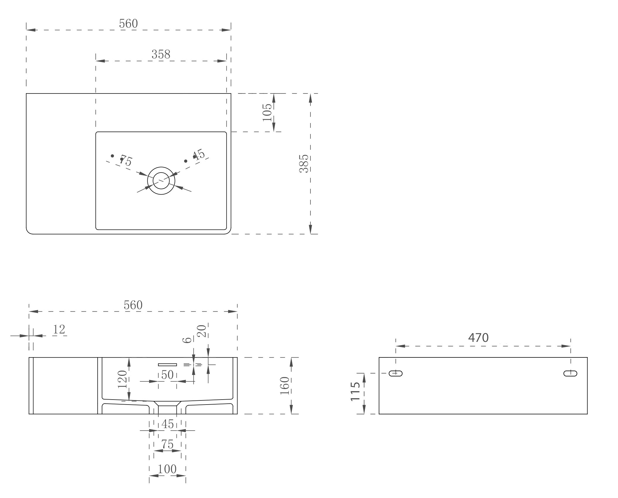 Раковина подвесная Abber Stein 56 см AS2644 R с донным клапаном, цвет белый матовый.