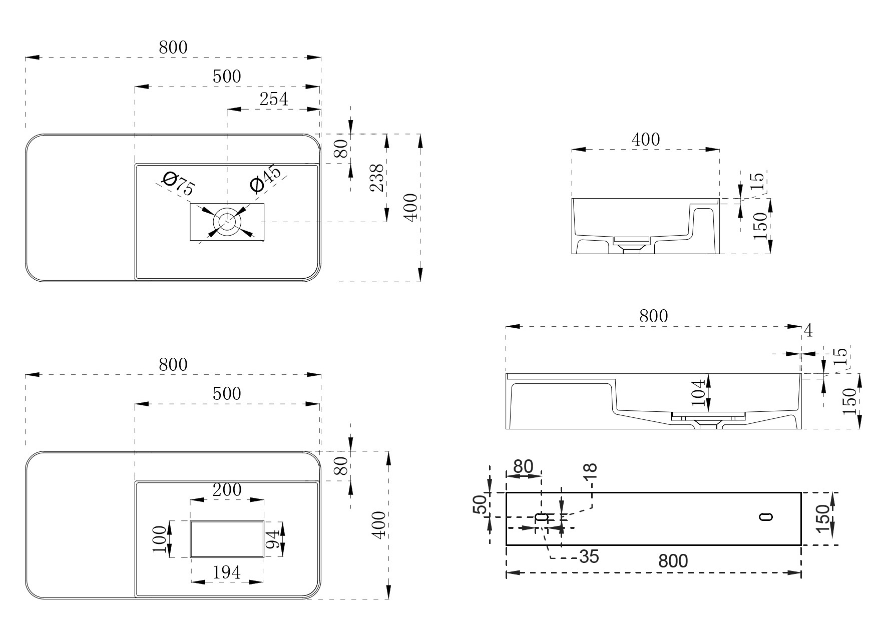 Раковина подвесная Abber Stein 80 см AS2627-0.8, белый матовый