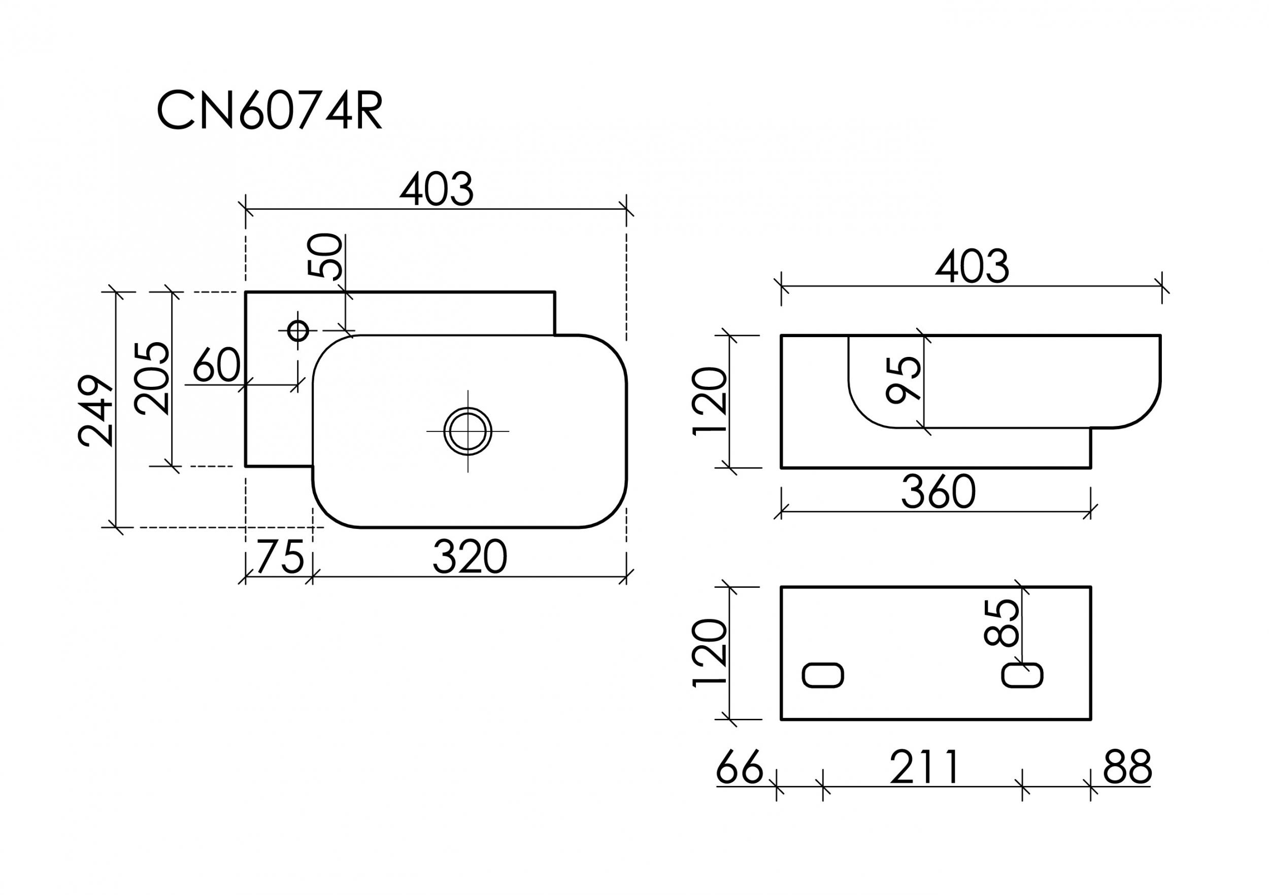 Раковина подвесная Ceramicanova Element CN6074R, размер 403х249 мм, цвет белый.