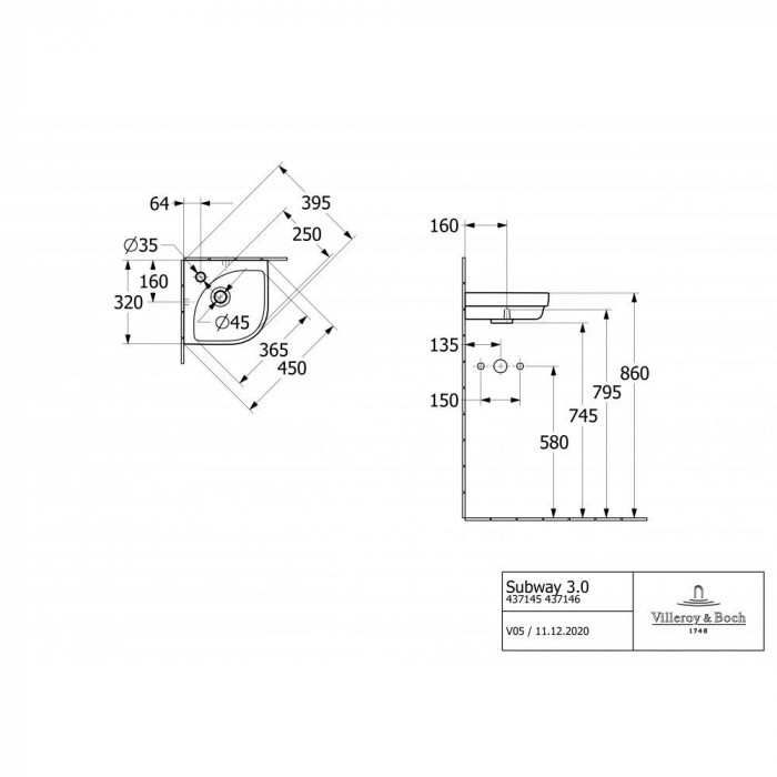 Раковина угловая Villeroy & Boch Subway 3.0 32 см 43714601