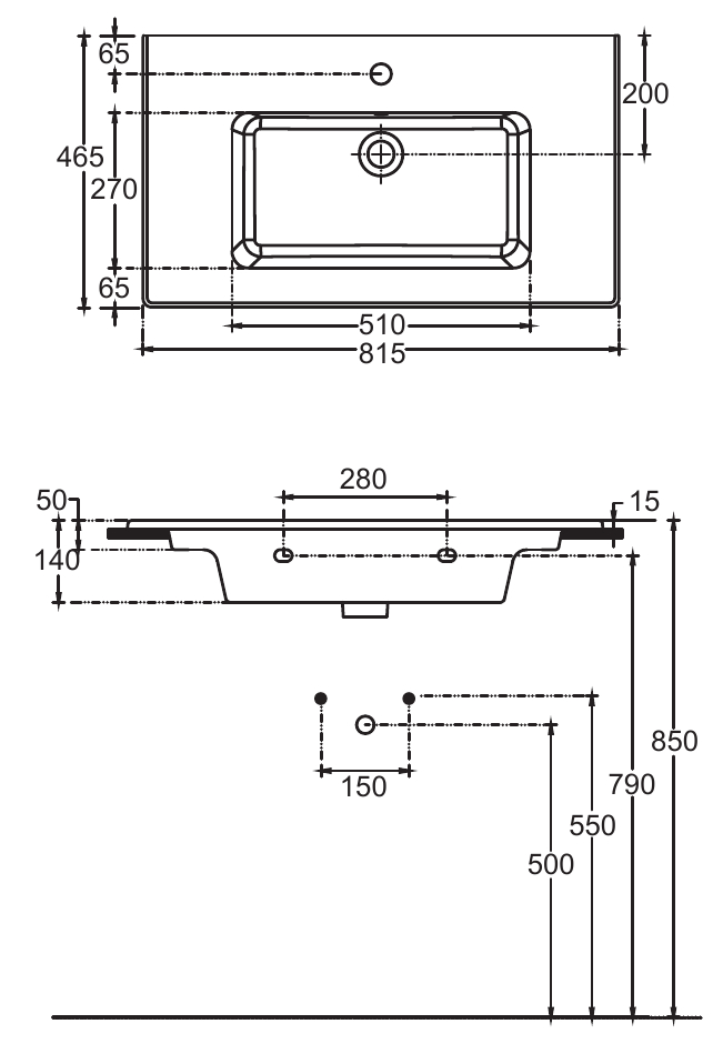 - Раковина не имеет отверстия для слива-перелива, но оборудована готовым отверстием под смеситель, что облегчает ее установку.
