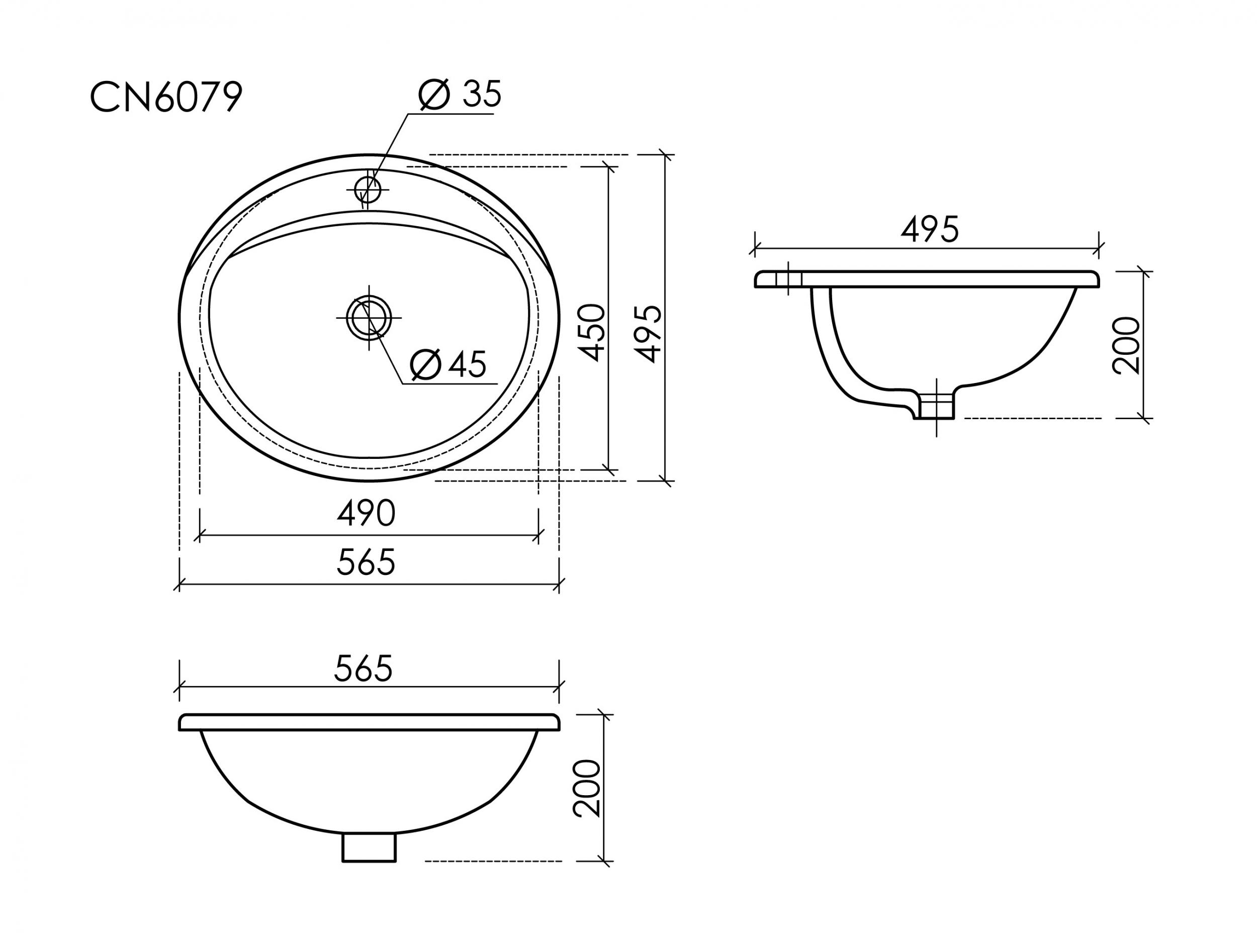Раковина врезная на столешницу Ceramicanova Sun CN6079, размер 565х495 мм. Цвет белый.