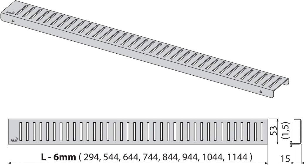 Перфорированная решетка AlcaPlast PURE-1150L глянцевая для водоотводящего желоба 1150 мм.