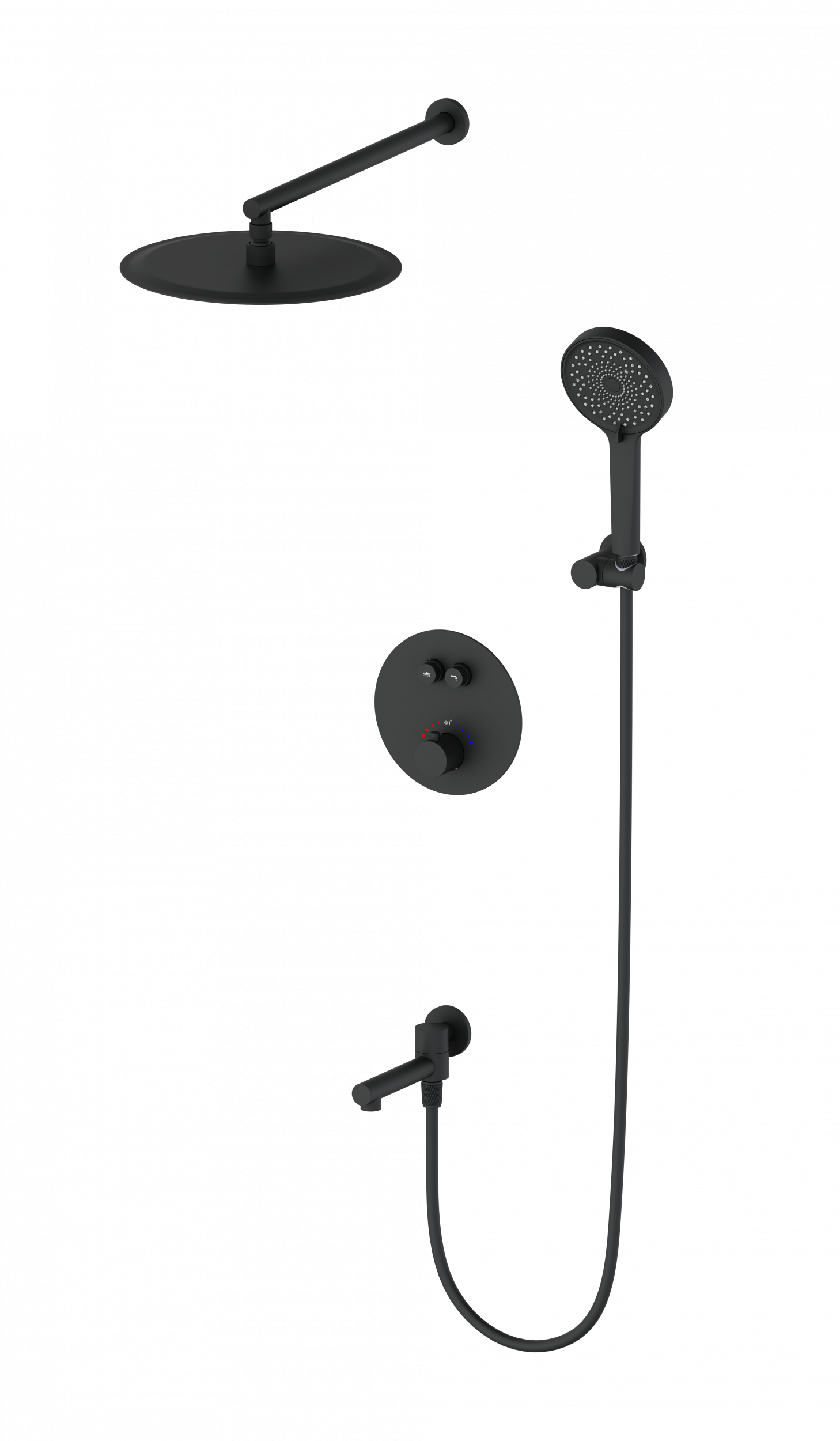 Душевая система для ванны с термостатом Wonzon & Woghand Stick WW-88929010-MB, чёрный матовый