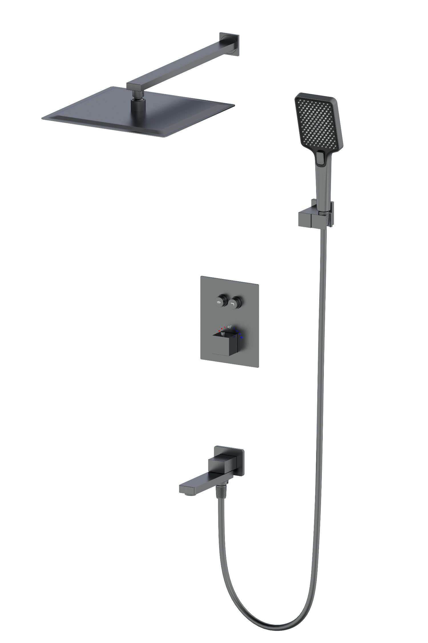 Душевая система для ванны с термостатом Wonzon & Woghand WW-88929003-BGM, тёмный графит брашированный