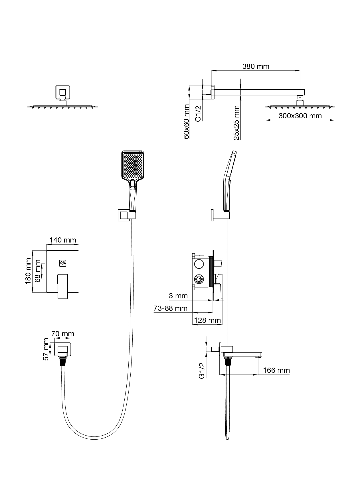 Душевая система для ванны Wonzon & Woghand Cube 2.0 WW-88087068-CR