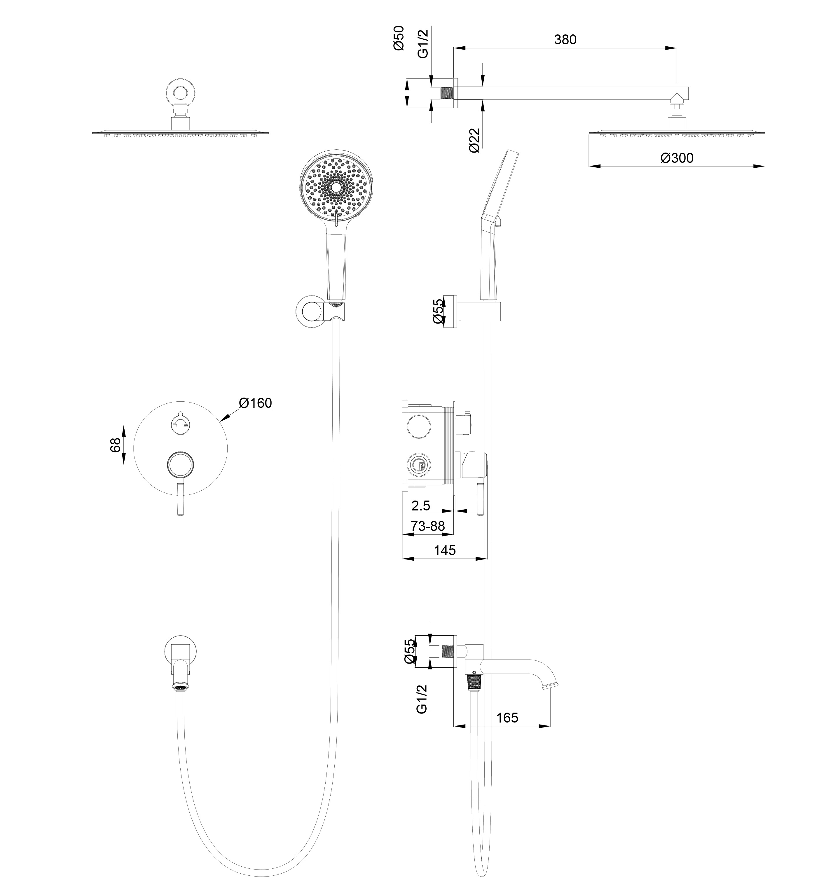 Описание душевая система с изливом Wonzon & Woghand WW-88939073-RG