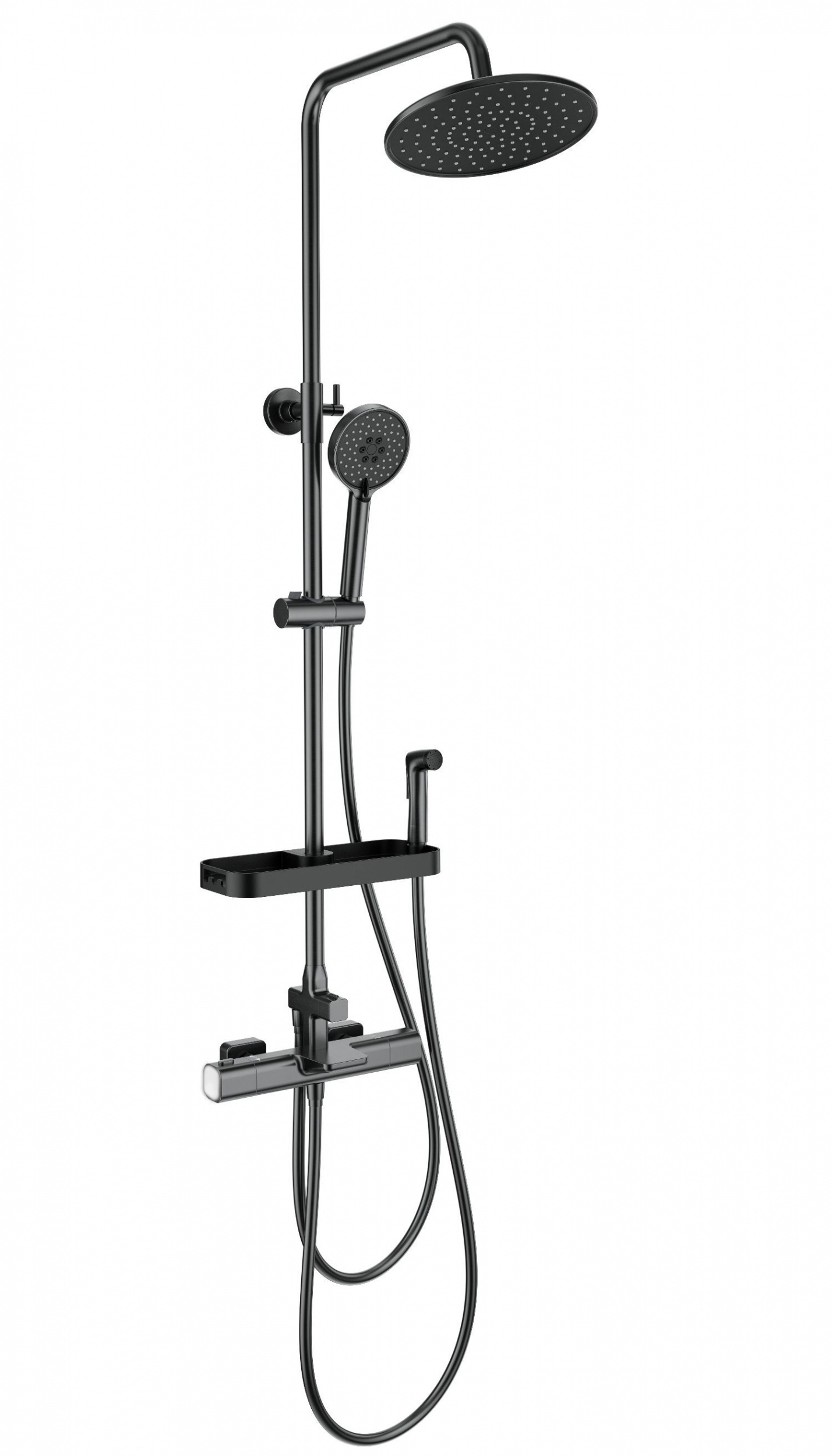 Душевая стойка с термостатом и гигиеническим душем Wonzon & Woghand Plate WW-C3017-A1-BGG, тёмный графит брашированный