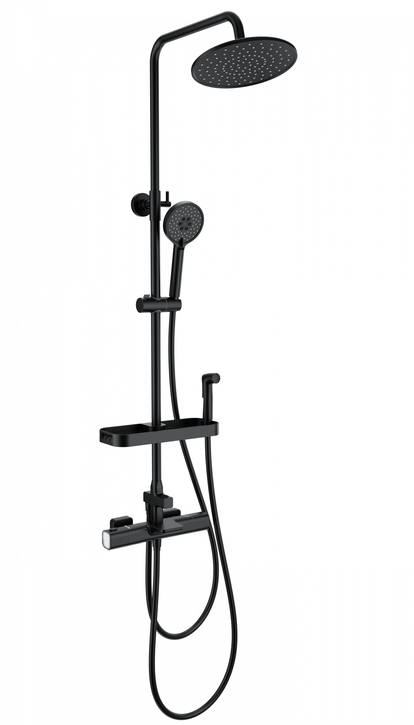 Душевая стойка с термостатом и гигиеническим душем Wonzon & Woghand Plate WW-C3017-A1-MB, чёрный матовый - фото