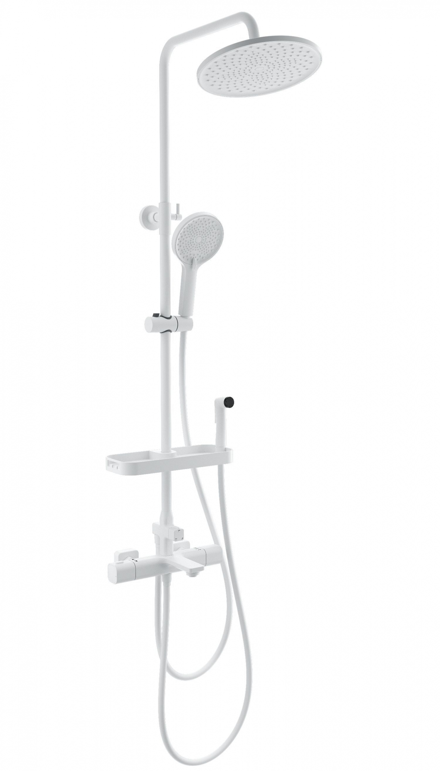 Душевая стойка с термостатом и гигиеническим душем Wonzon & Woghand Solid WW-C3011-A1-MW, белый матовый