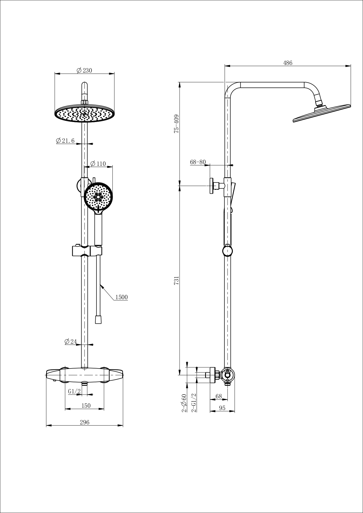 Описание душевая система без излива Wonzon & Woghand WW-B3031-A-BG