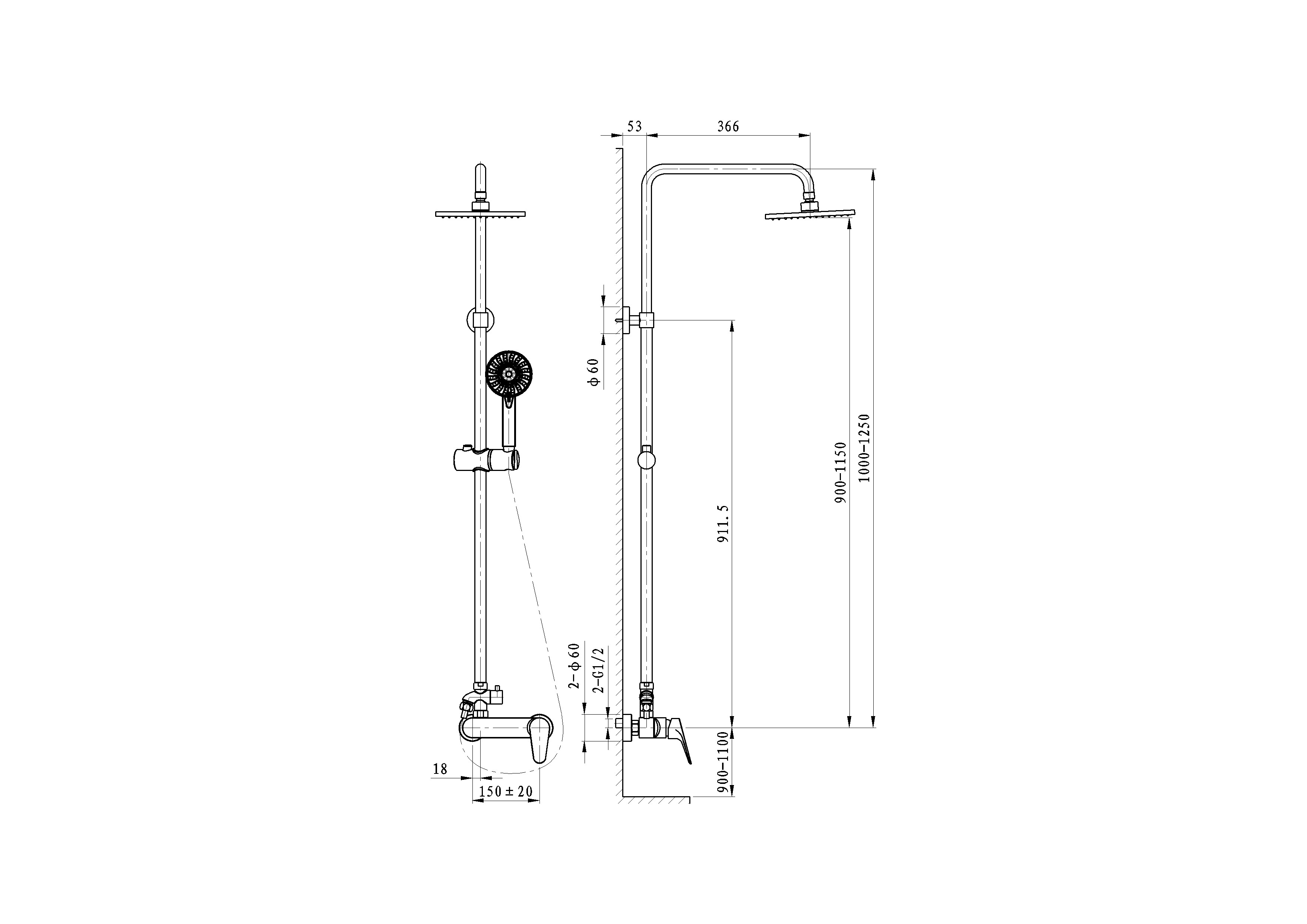 Характеристики душевая система без излива Wonzon & Woghand (WW-054601-CR)