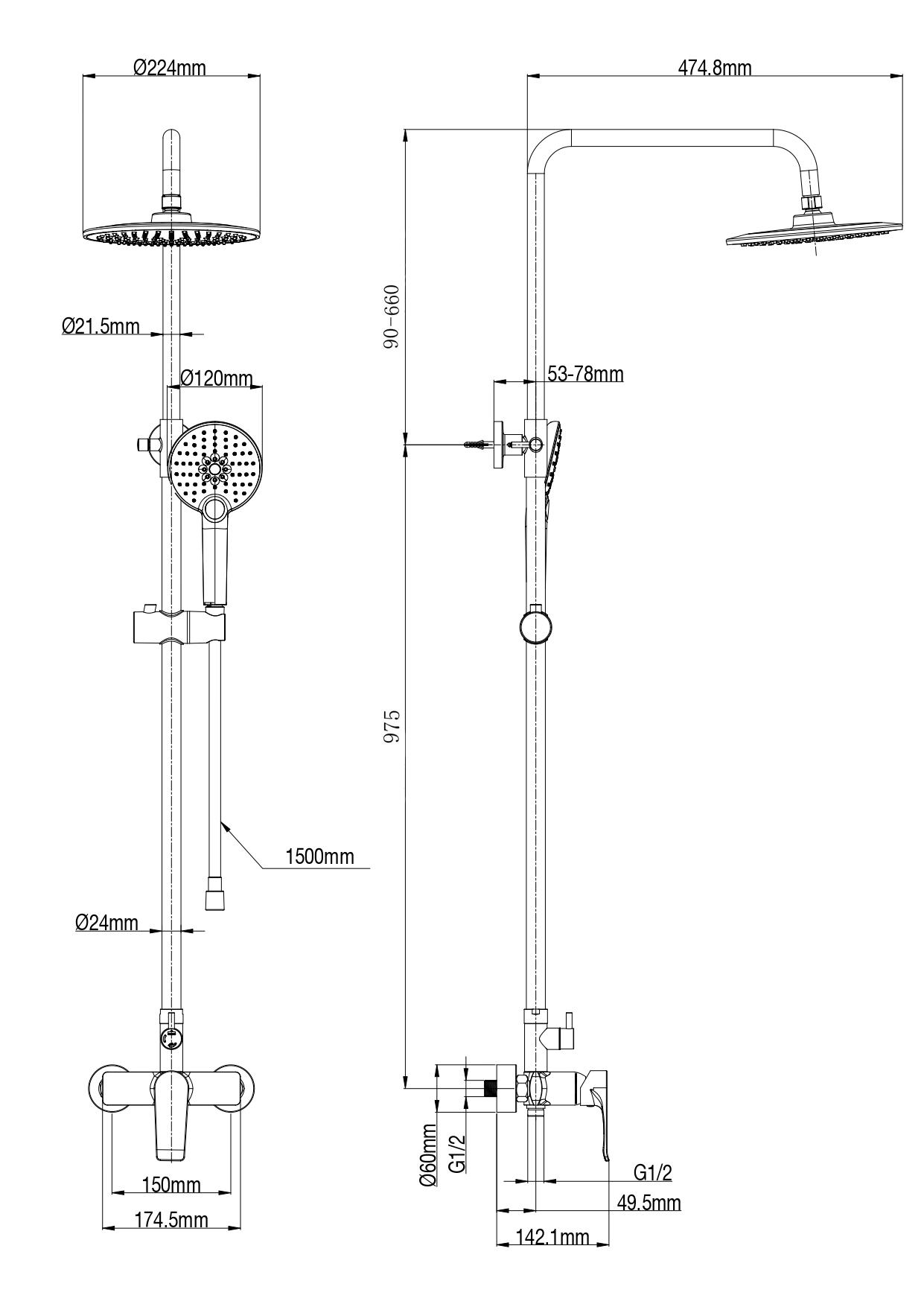 Описание душевая система без излива Wonzon & Woghand WW-A30103-CR