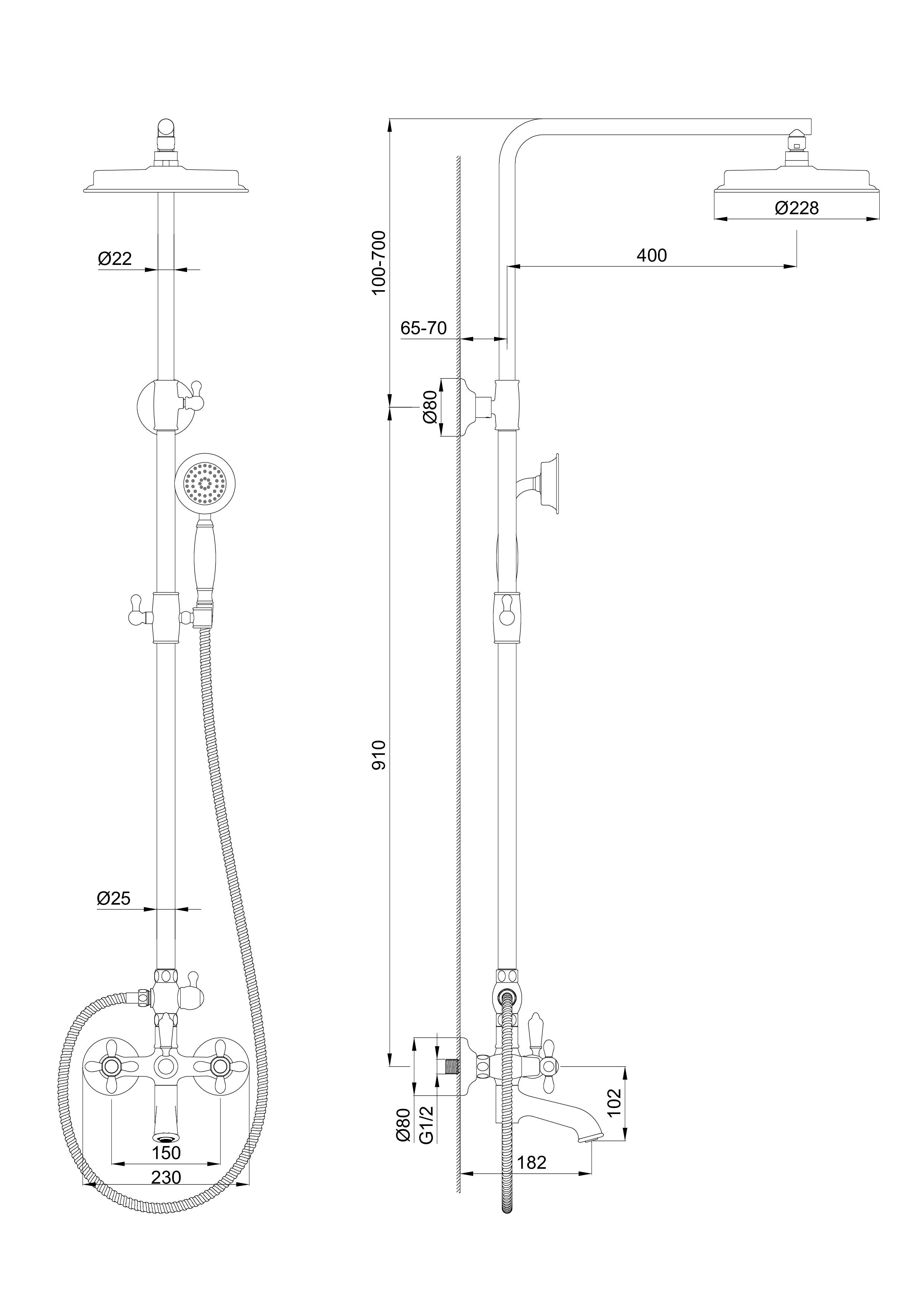Душевая стойка Wonzon & Woghand Retro WW-88739020-CR