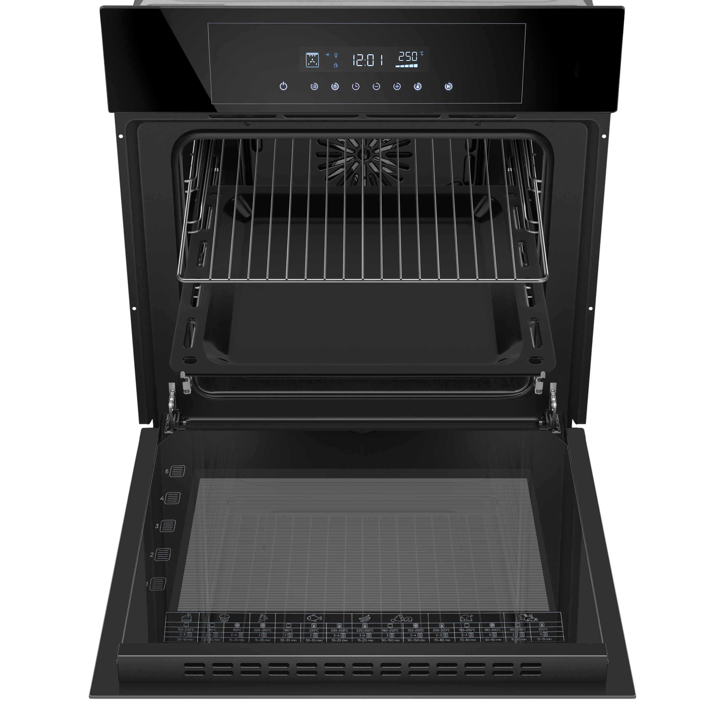 - Комплектация: Стандартный противень, хромированная решетка, хромированные направляющие