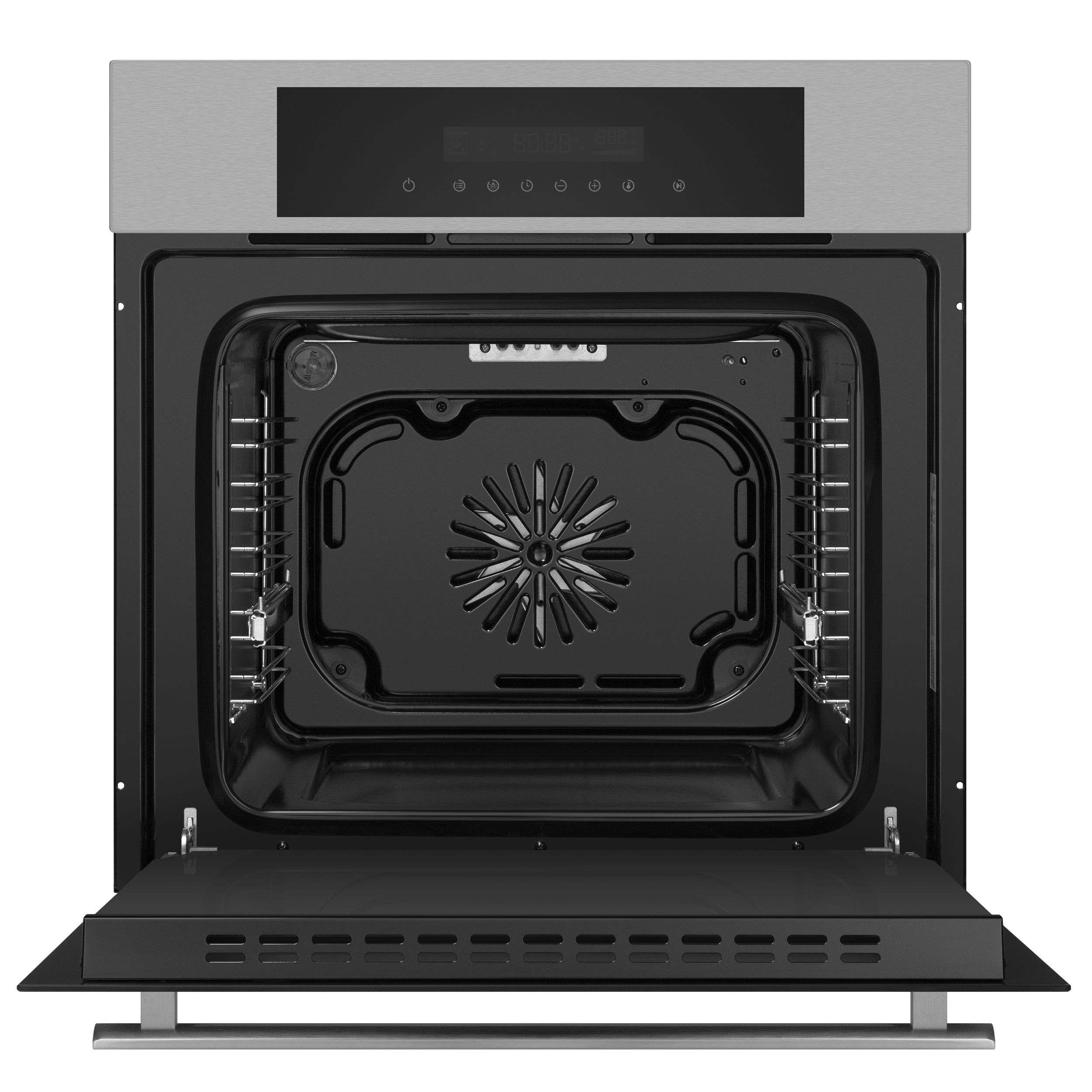 - Комплектация: стандартный противень, хромированная решетка, хромированные телескопических направляющие, хромированные направляющие