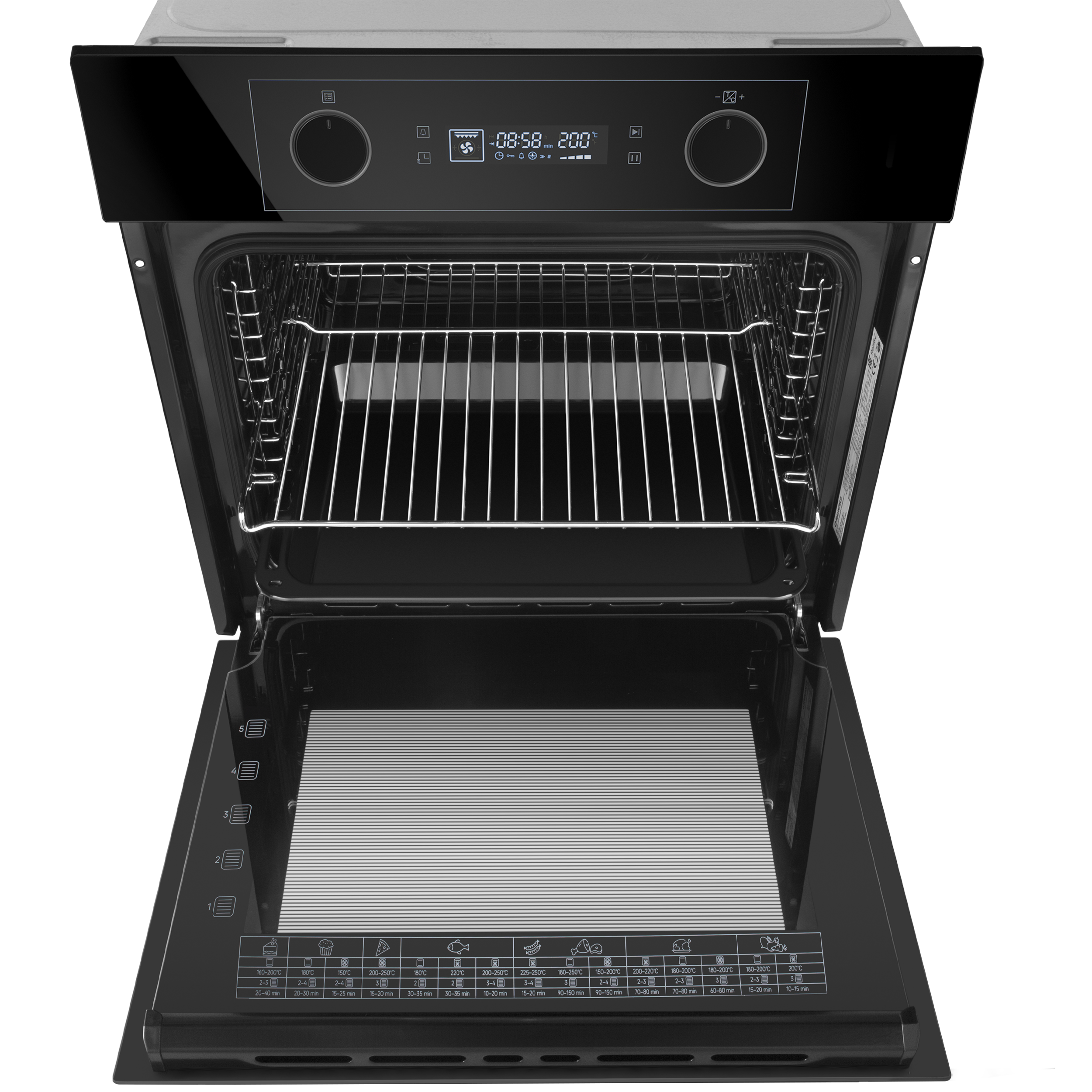 - Комплектация: противень для выпечки, хромированная решетка, 5ти уровневые хромированные направляющие