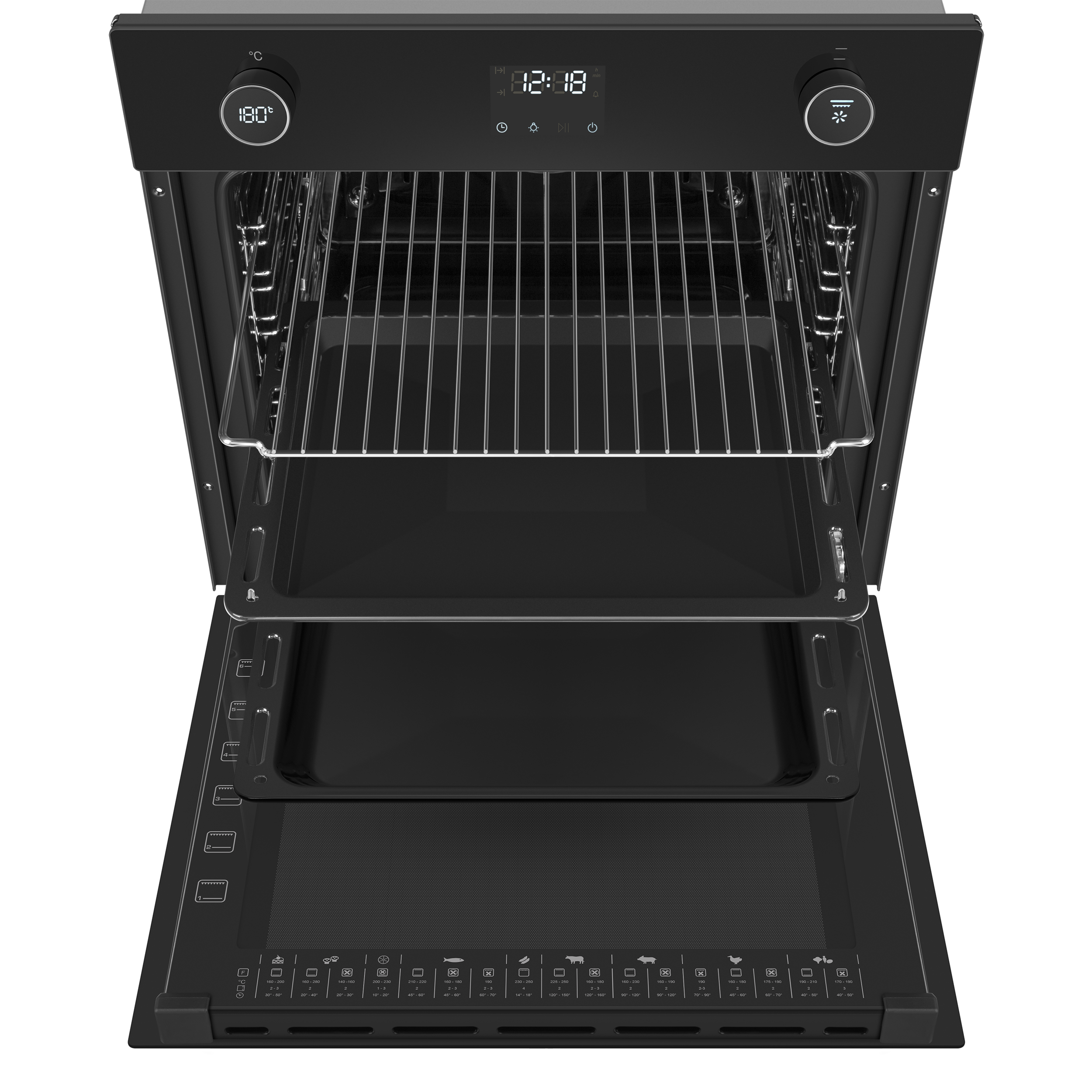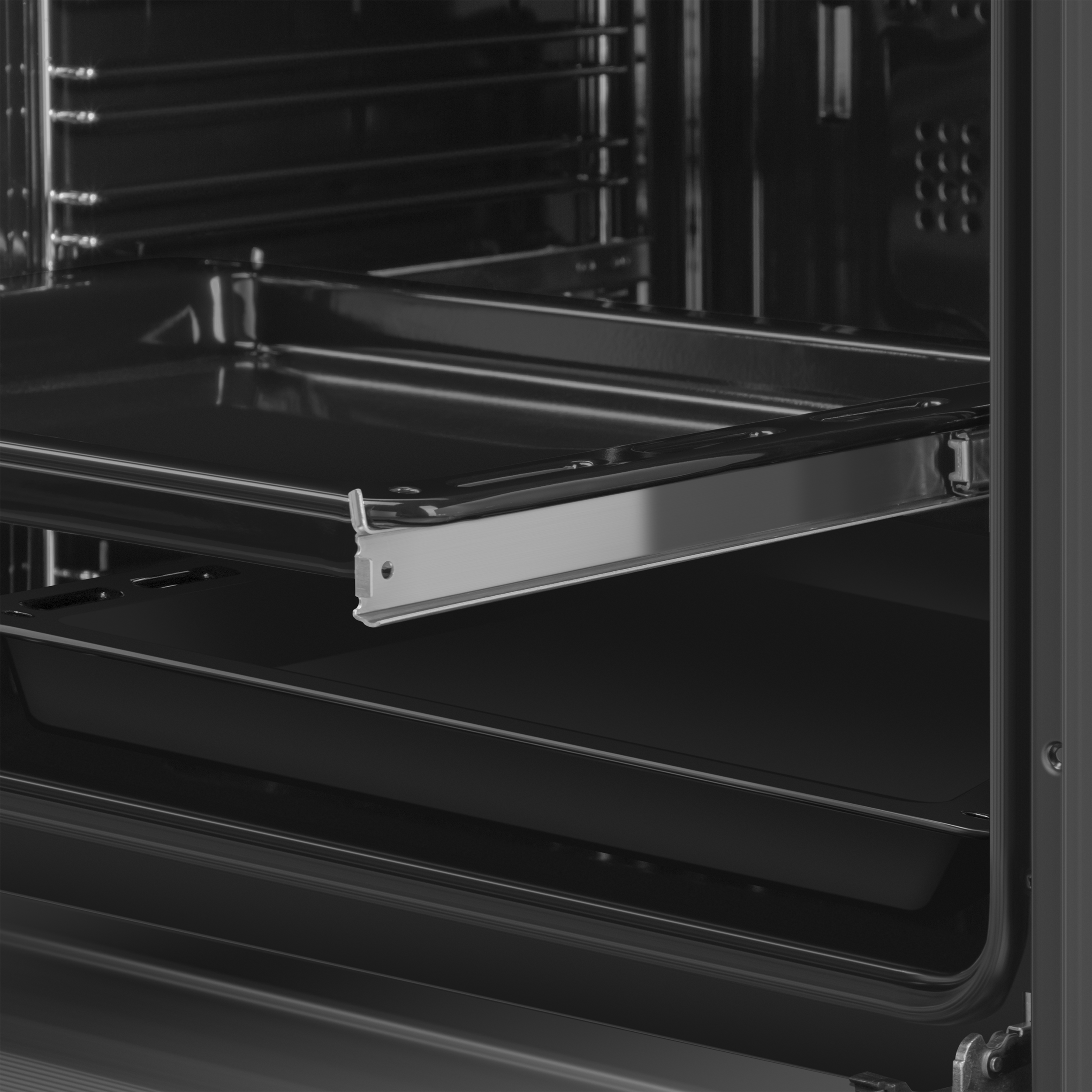 - Комплектация: стандартный противень, глубокий противень, хромированная решетка, хромированные телескопических направляющие, хромированные направляющие, прихват