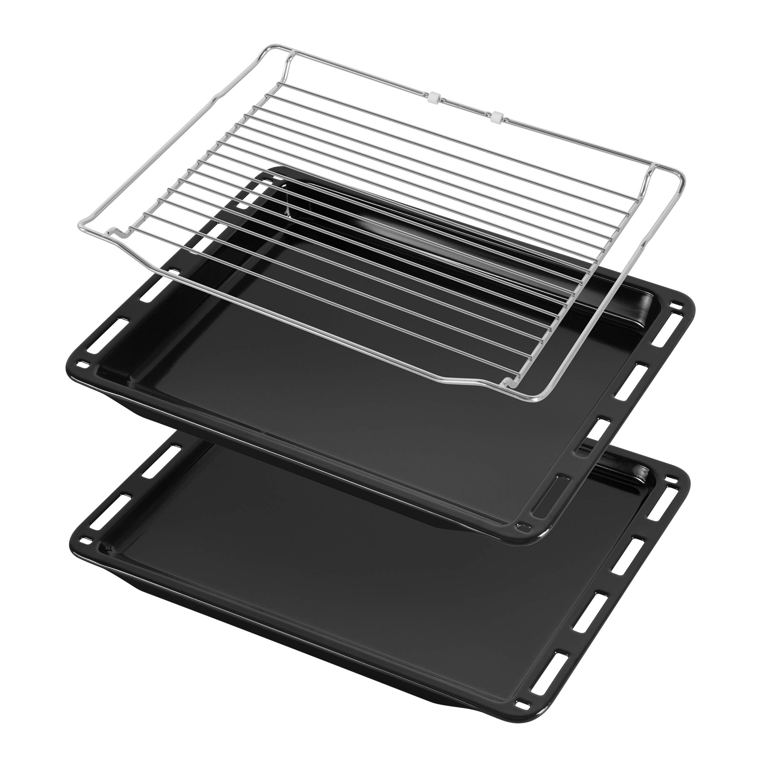 - Комплектация: В комплекте: противень глубокий, противень стандартный, решетка, хромированные направляющие для противней