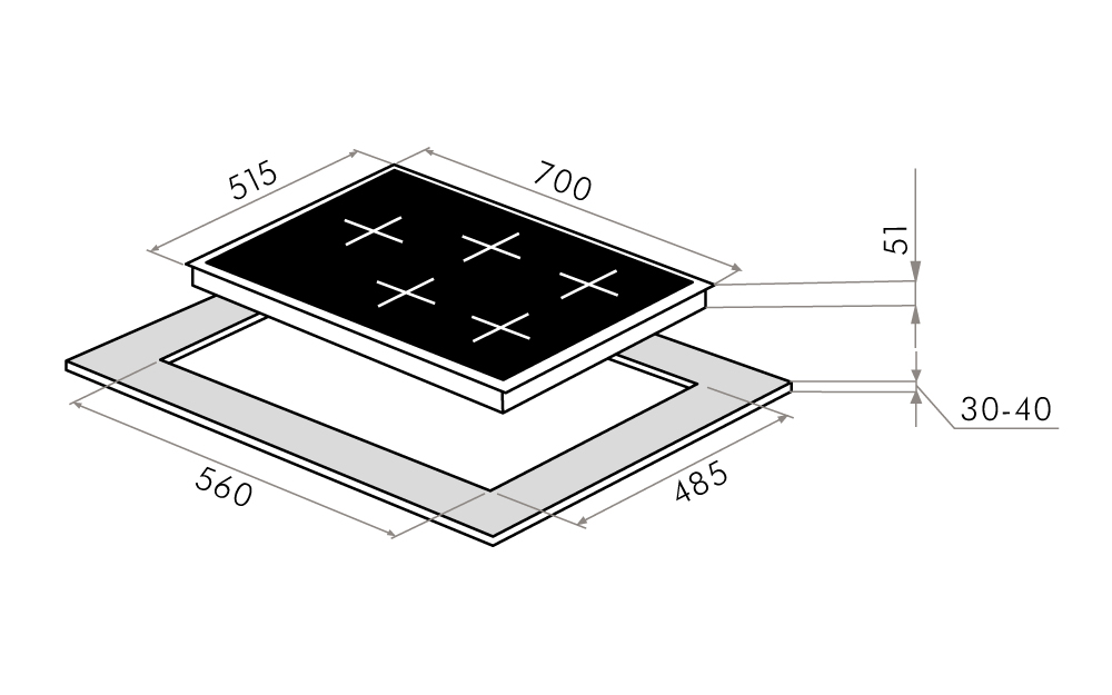 - Диаметр конфорок, мм: 1 маленькая, 2 средние, 1 большая, 1 WOK