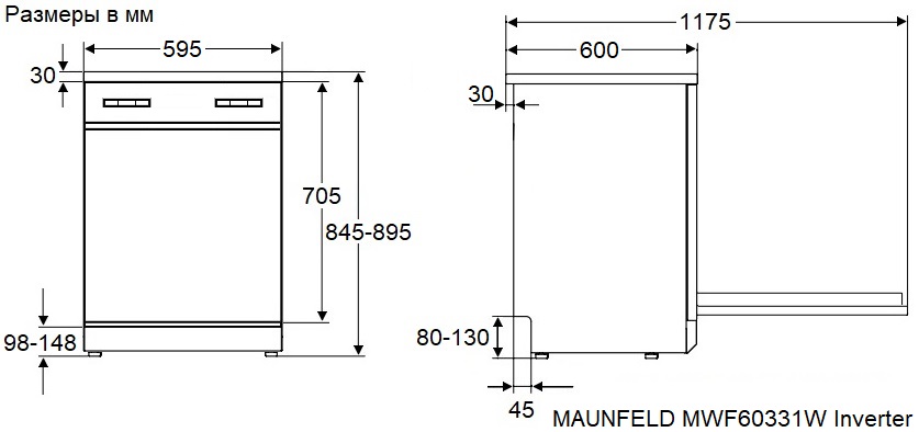 Отдельностоящая посудомоечная машина Maunfeld MWF60331W Inverter