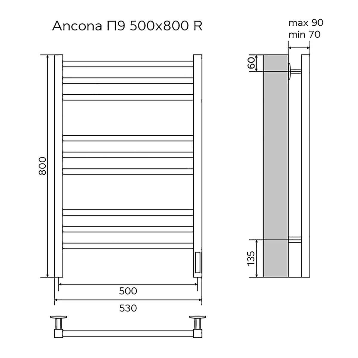 Полотенцесушитель электрический Azario Ancona П9 500x800 мм AZ71858W
