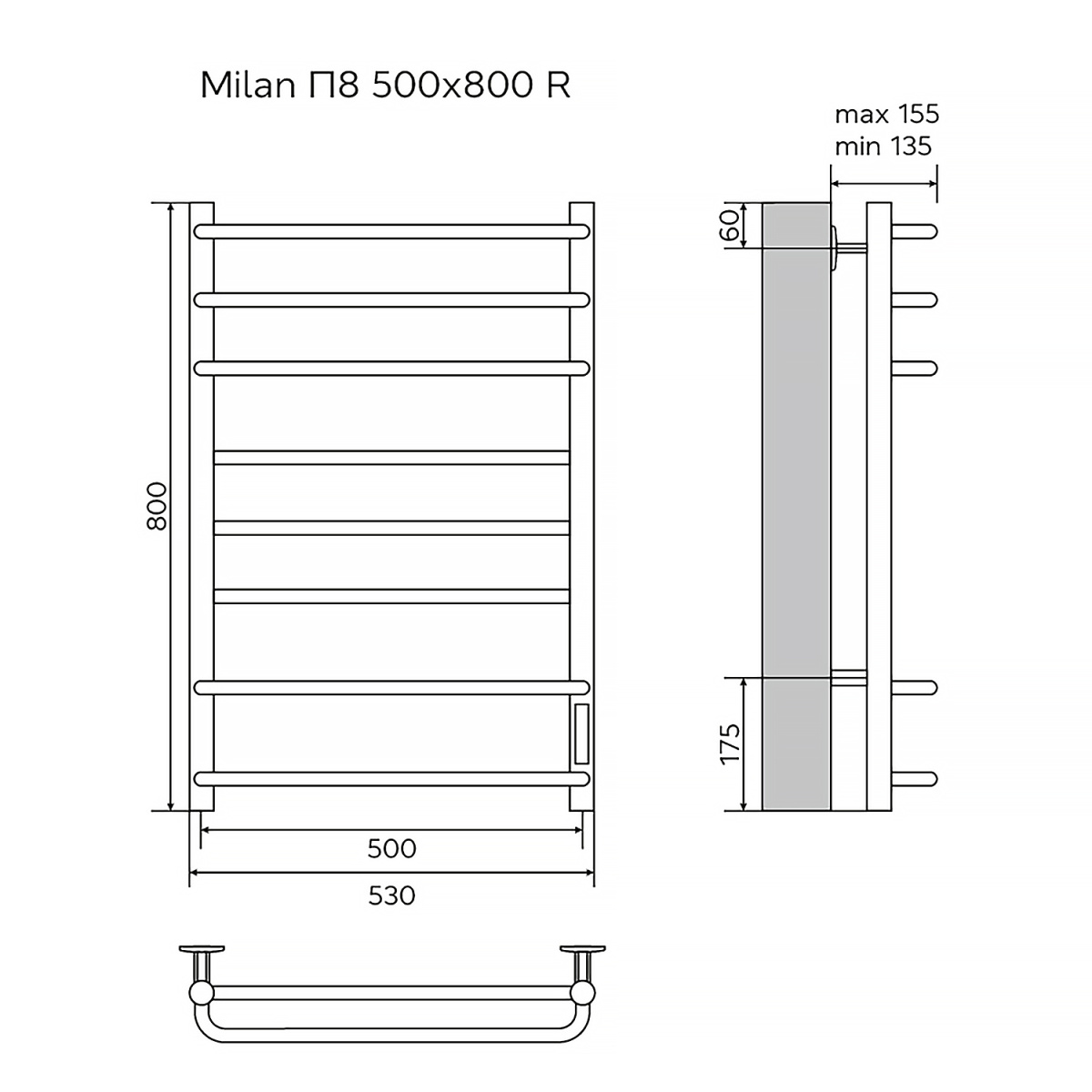 Полотенцесушитель электрический Azario Milan П8 500x800 мм AZ90858W
