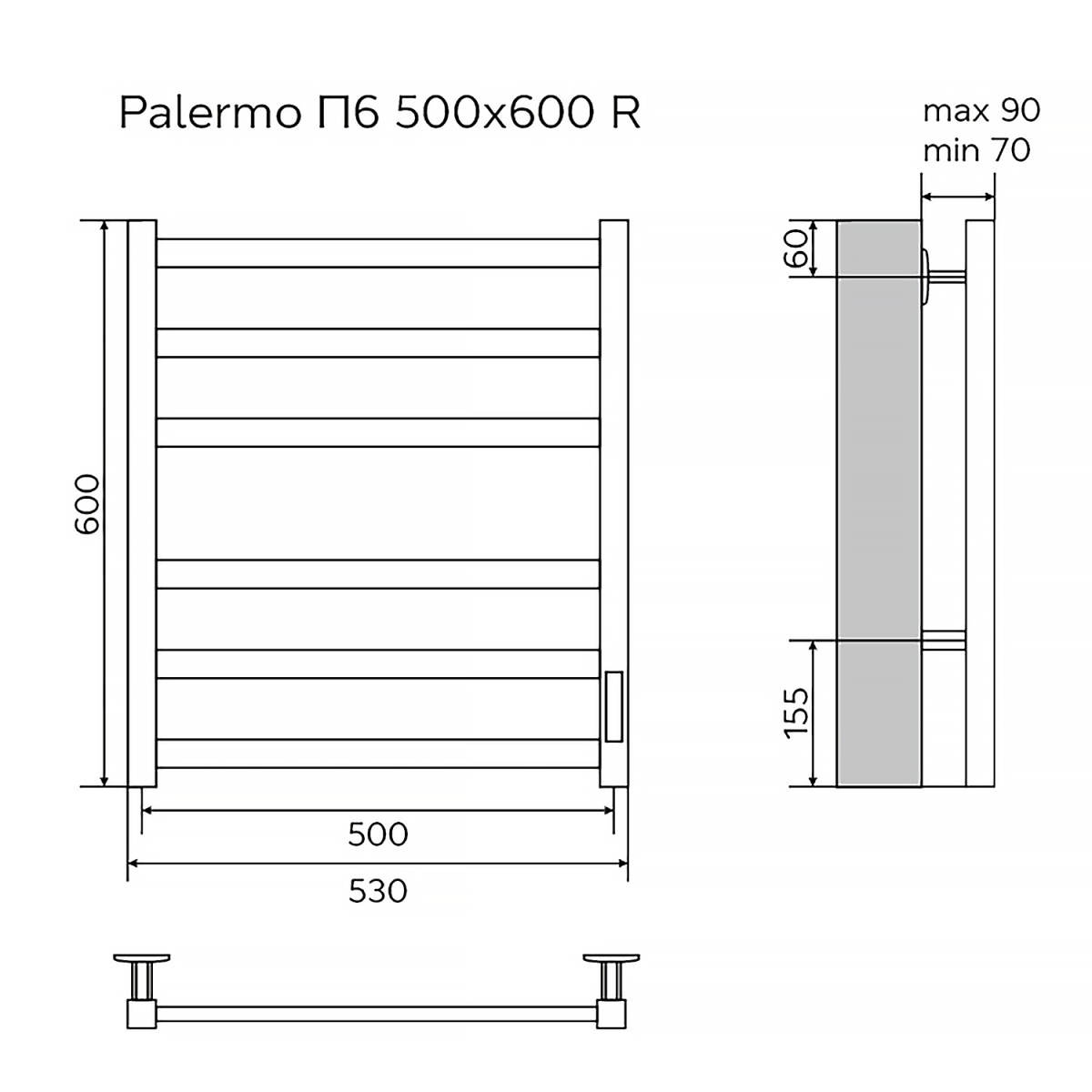 Полотенцесушитель электрический Azario Palermo П6 500x600 мм AZ83856B