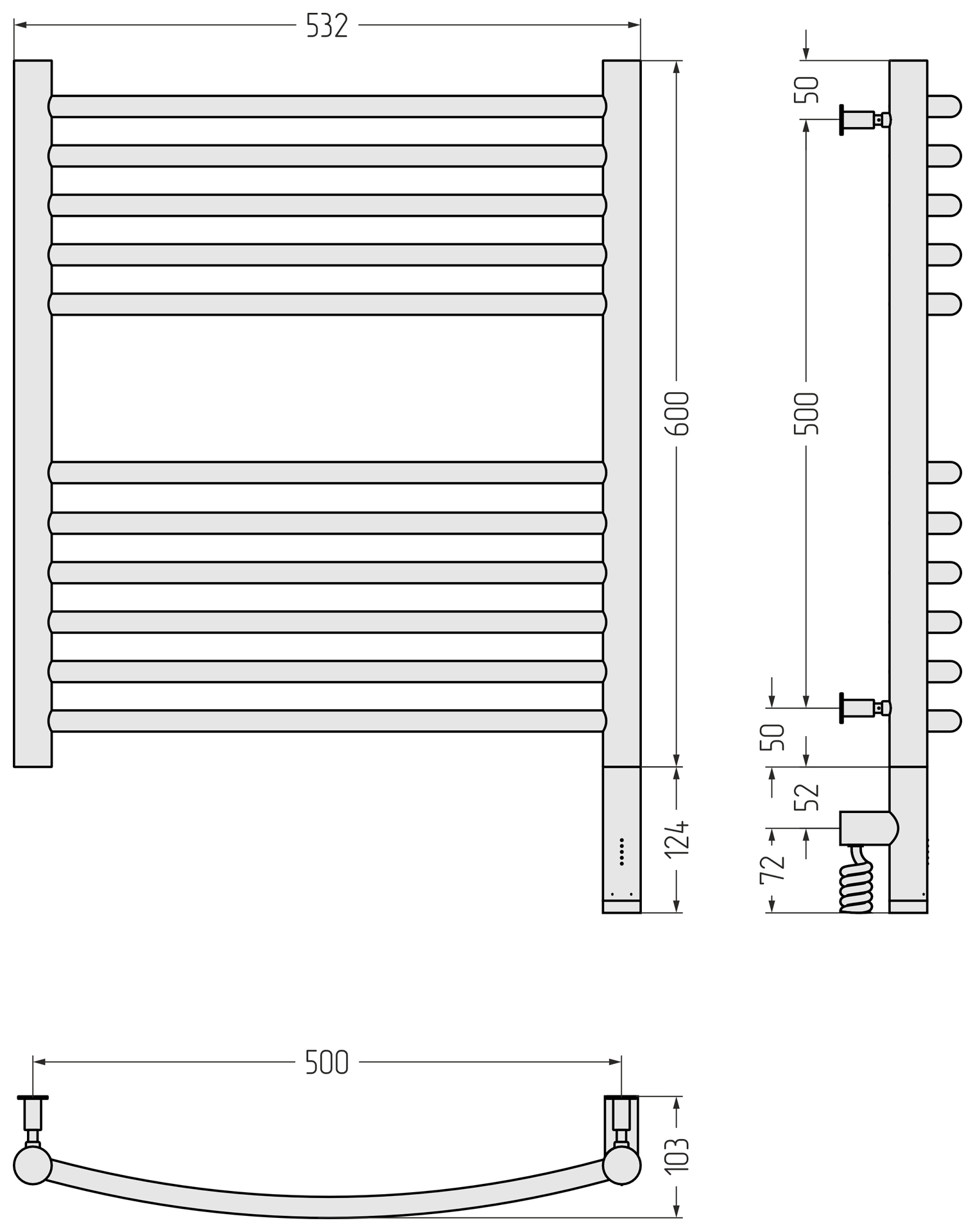 Полотенцесушитель электрический Сунержа Богема 3.0 П11 500x720 мм (выгнутая перемычка) 051-5803-6050 R, состаренная латунь