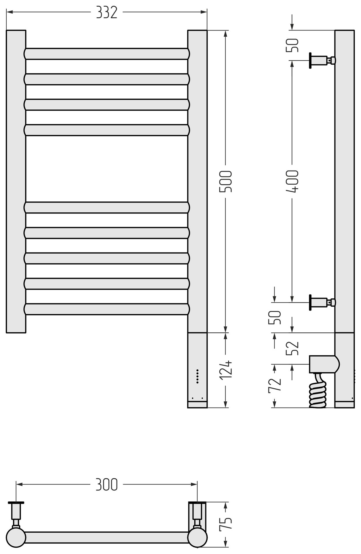 Полотенцесушитель электрический Сунержа Богема 3.0 П9 300x620 мм (прямая перемычка) 15-5805-5030 R, тёмный титан муар