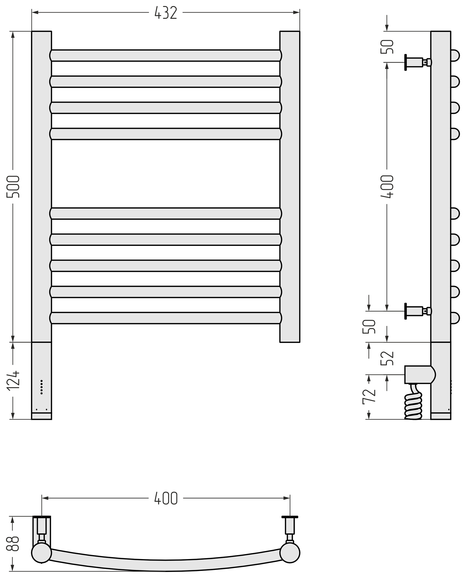 Полотенцесушитель электрический Сунержа Богема 3.0 П9 400x620 мм (выгнутая перемычка) 15-5802-5040 L, тёмный титан муар
