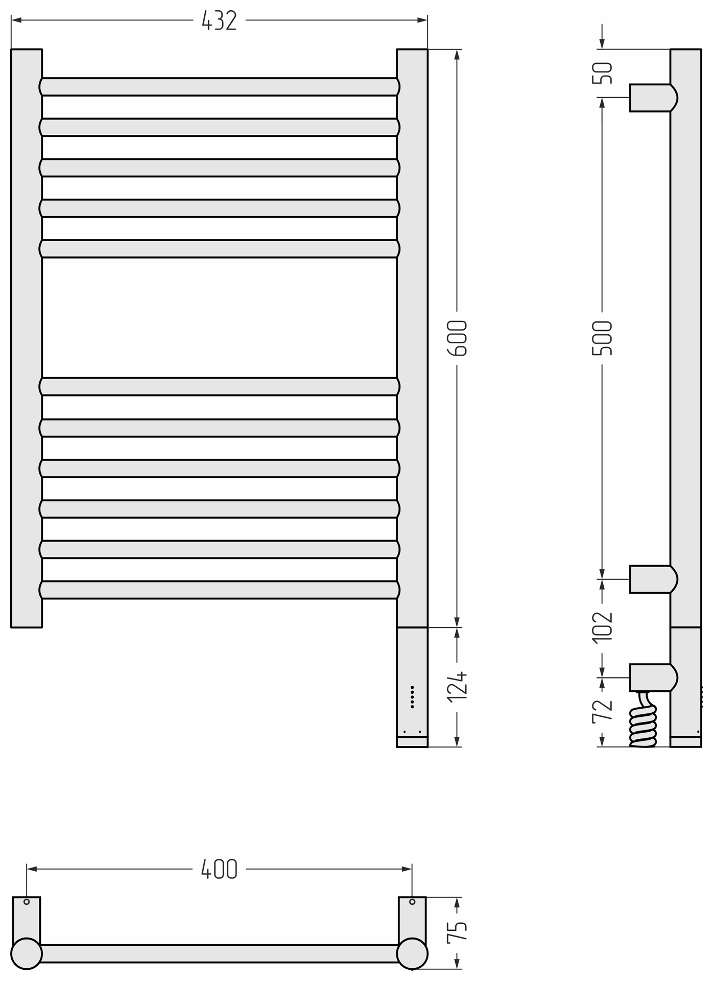 Полотенцесушитель электрический Сунержа Богема 3.1 П11 400x720 мм (прямая перемычка) 30-6005-6040 R, белый матовый