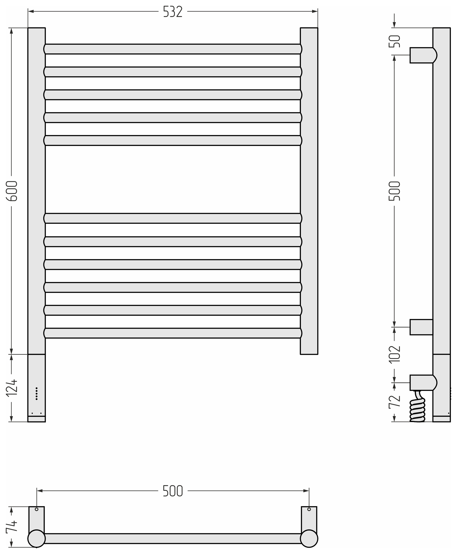 Полотенцесушитель электрический Сунержа Богема 3.1 П11 500x720 мм (прямая перемычка) 020-6004-6050 L, шампань