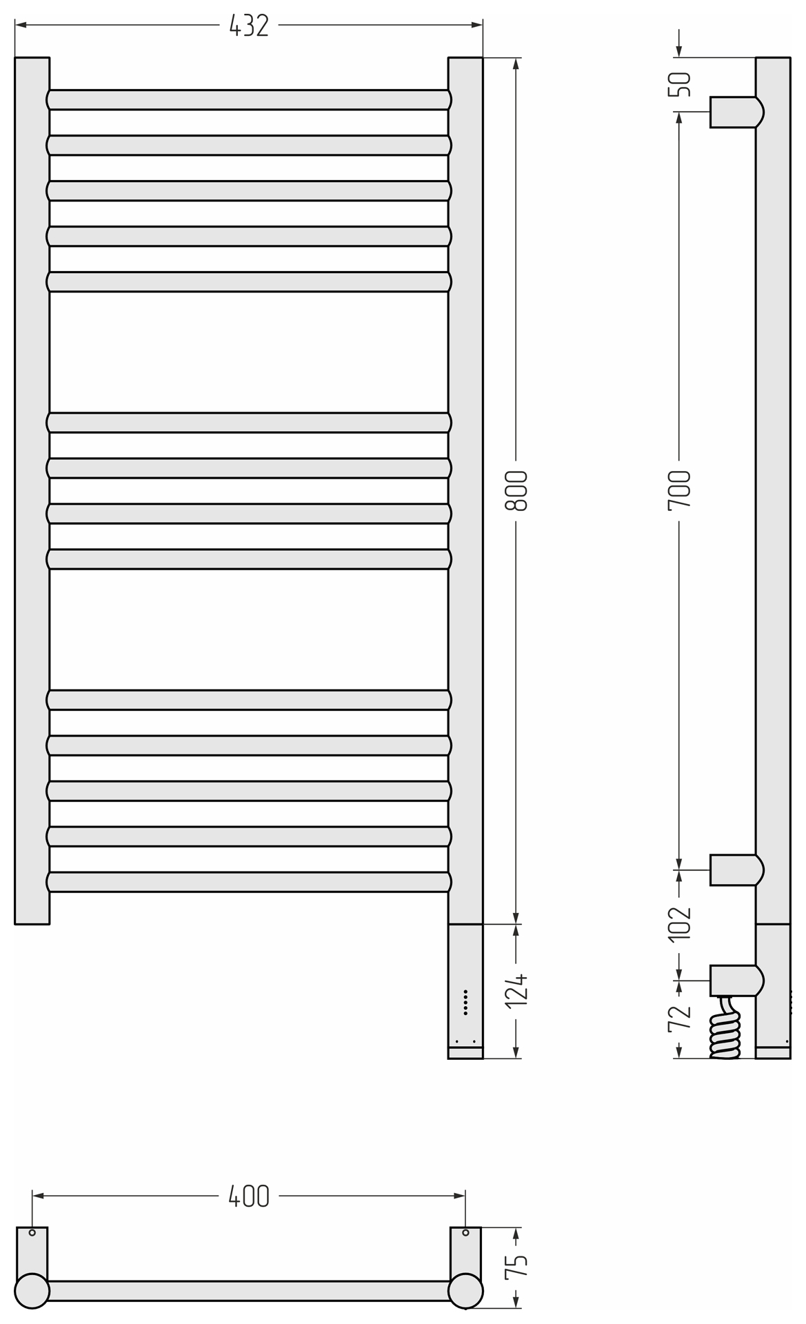 Полотенцесушитель электрический Сунержа Богема 3.1 П14 400x920 мм (прямая перемычка) 00-6005-8040 R, хром