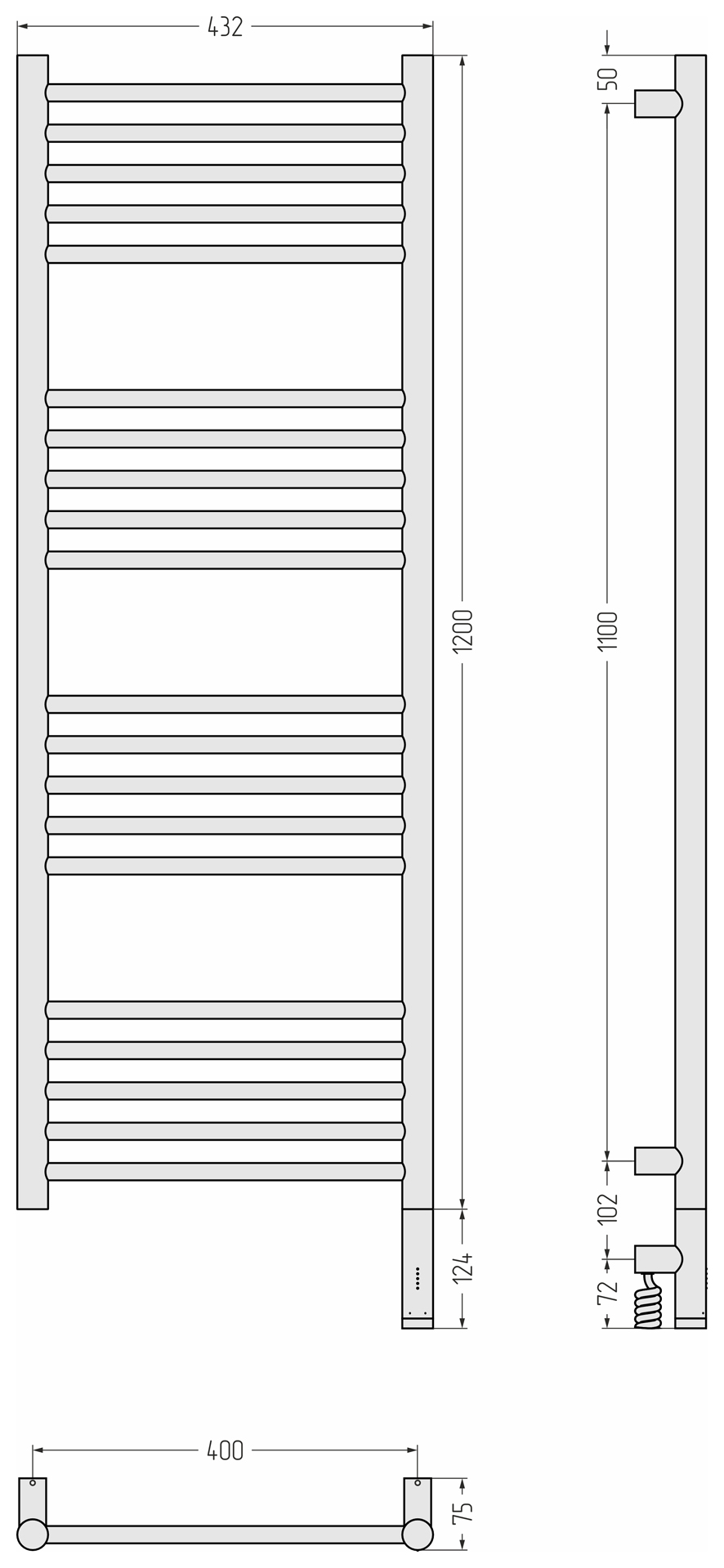 Полотенцесушитель электрический Сунержа Богема 3.1 П20 400x1320 мм (прямая перемычка) 15-6005-1240 R, тёмный титан муар