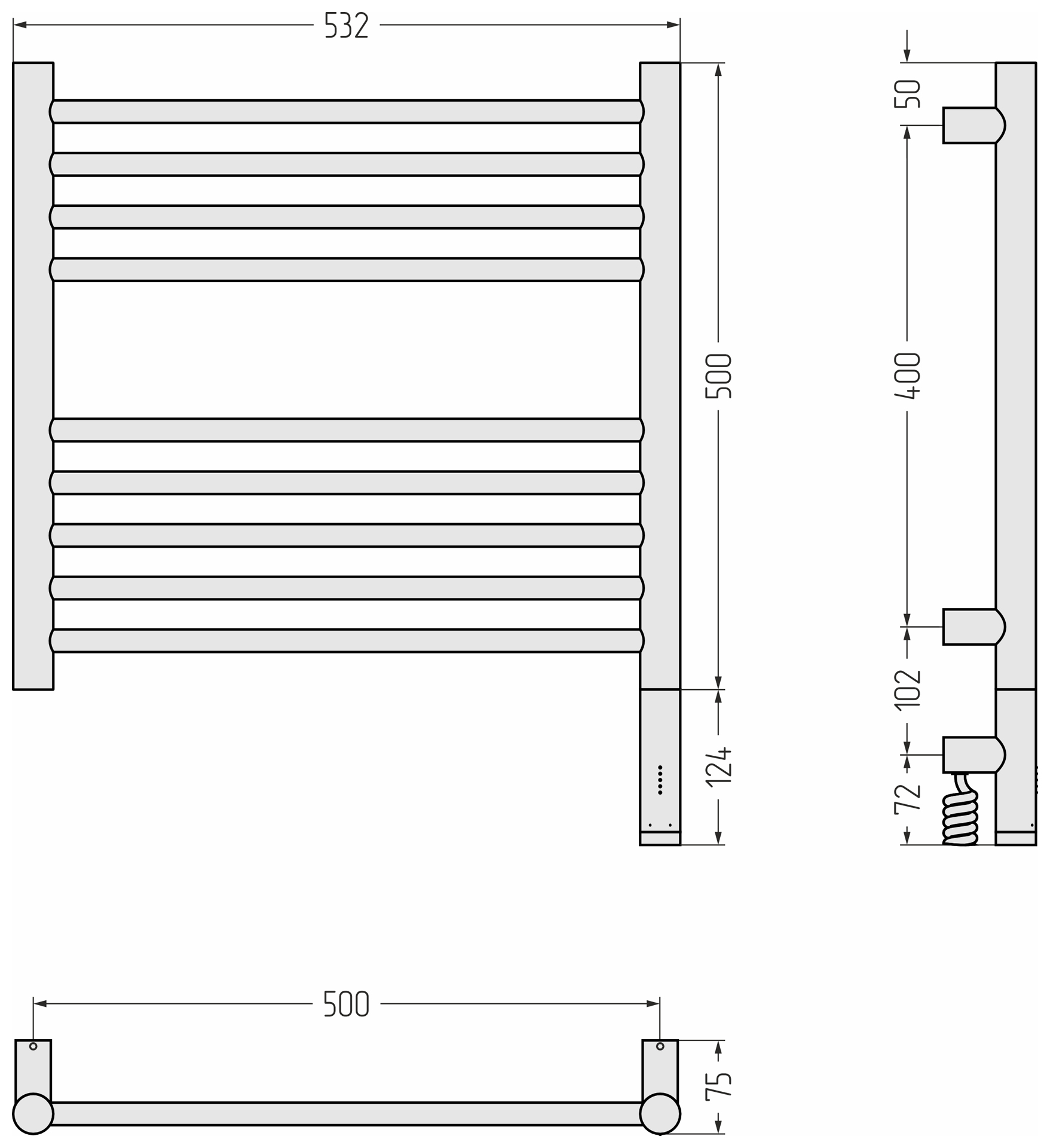 Полотенцесушитель электрический Сунержа Богема 3.1 П9 500x620 мм (прямая перемычка) 15-6005-5050 R, тёмный титан муар