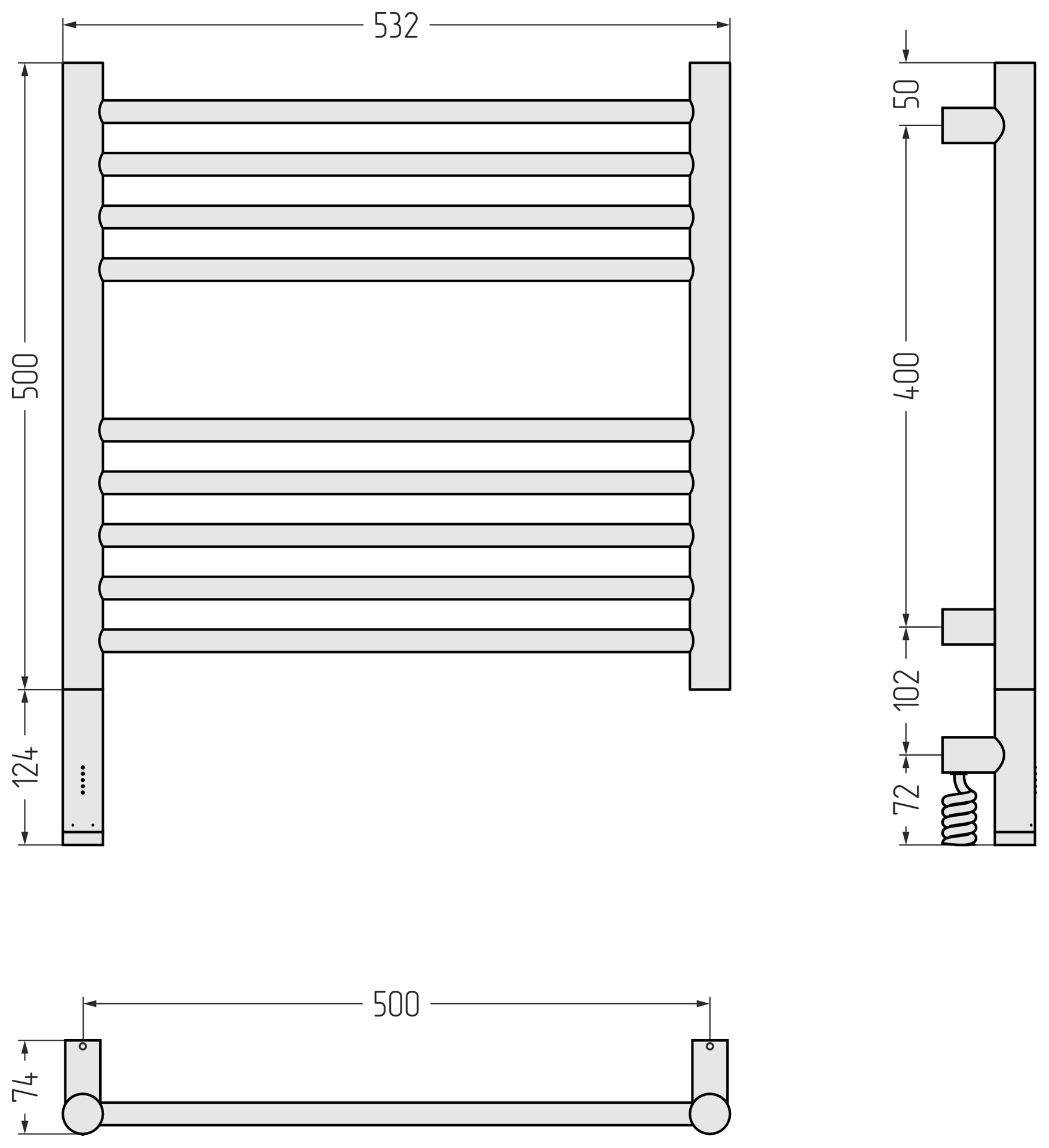 Полотенцесушитель электрический Сунержа Богема 3.1 П9 500x620 мм (прямая перемычка) 31-6004-5050 L, чёрный матовый