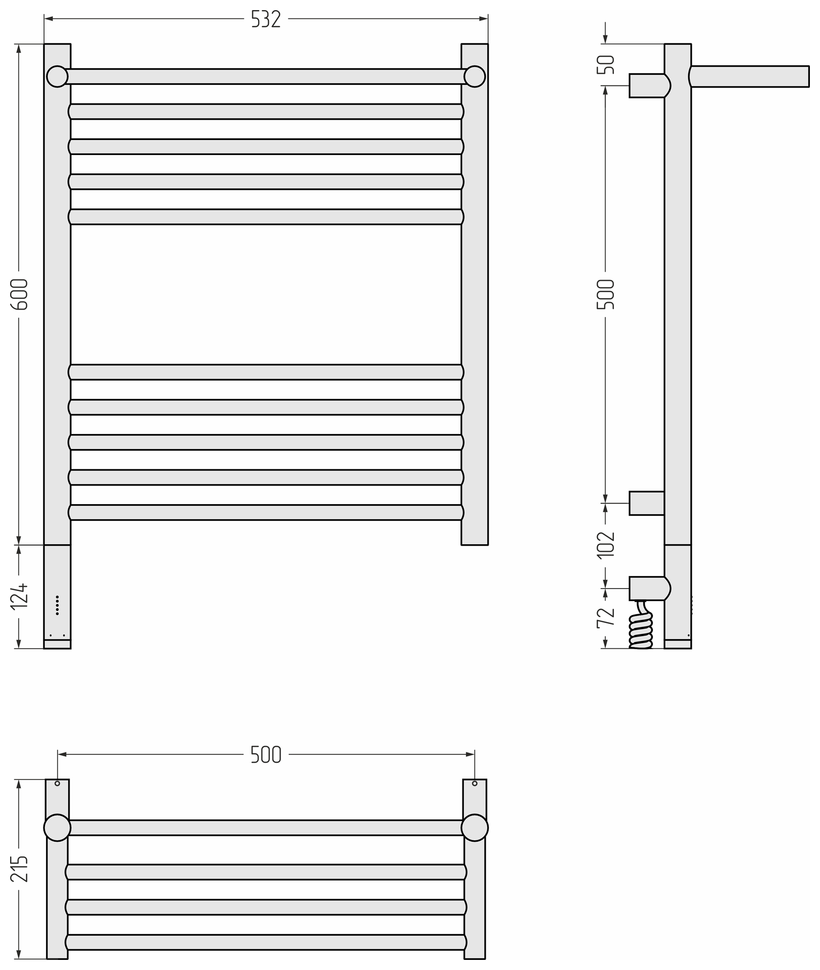 Полотенцесушитель электрический Сунержа Богема 3.1 с полкой П10 500x720 мм 31-6006-6050 L, чёрный матовый