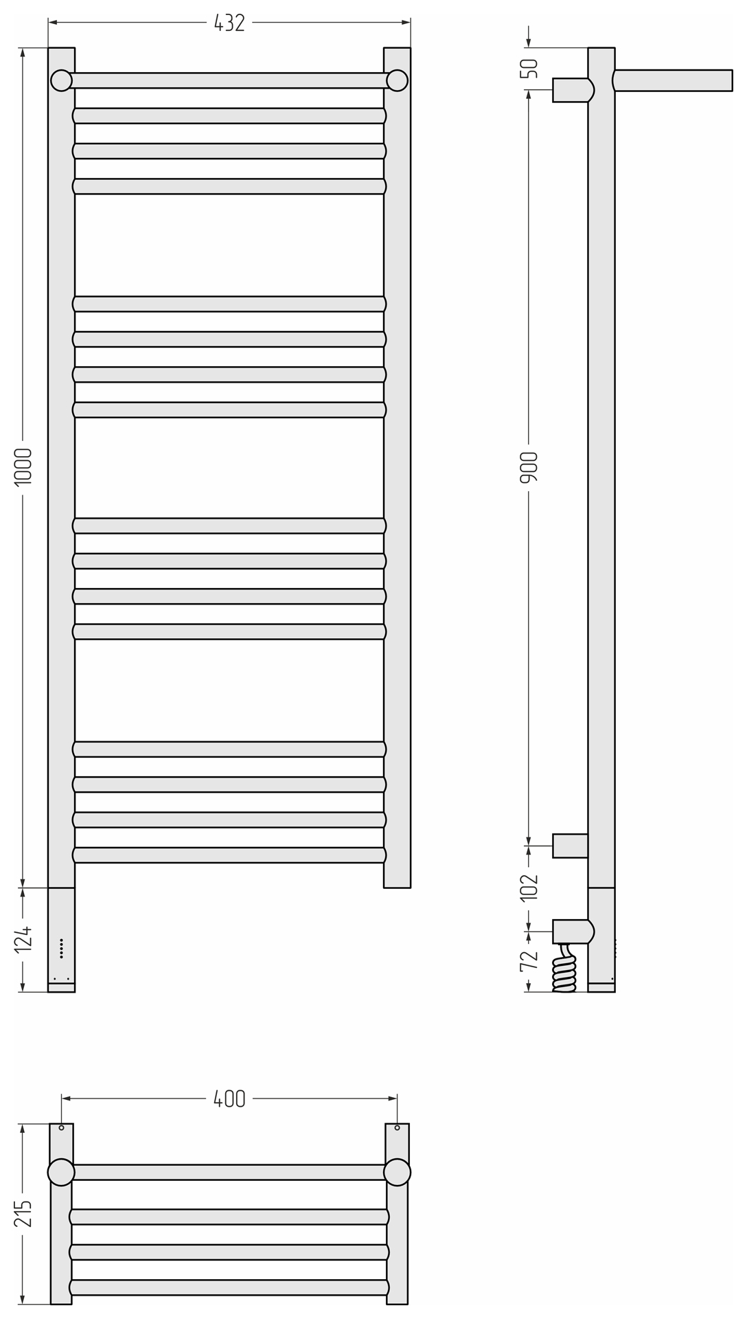 Полотенцесушитель электрический Сунержа Богема 3.1 с полкой П16 400x1120 мм 00-6006-1040 L, хром