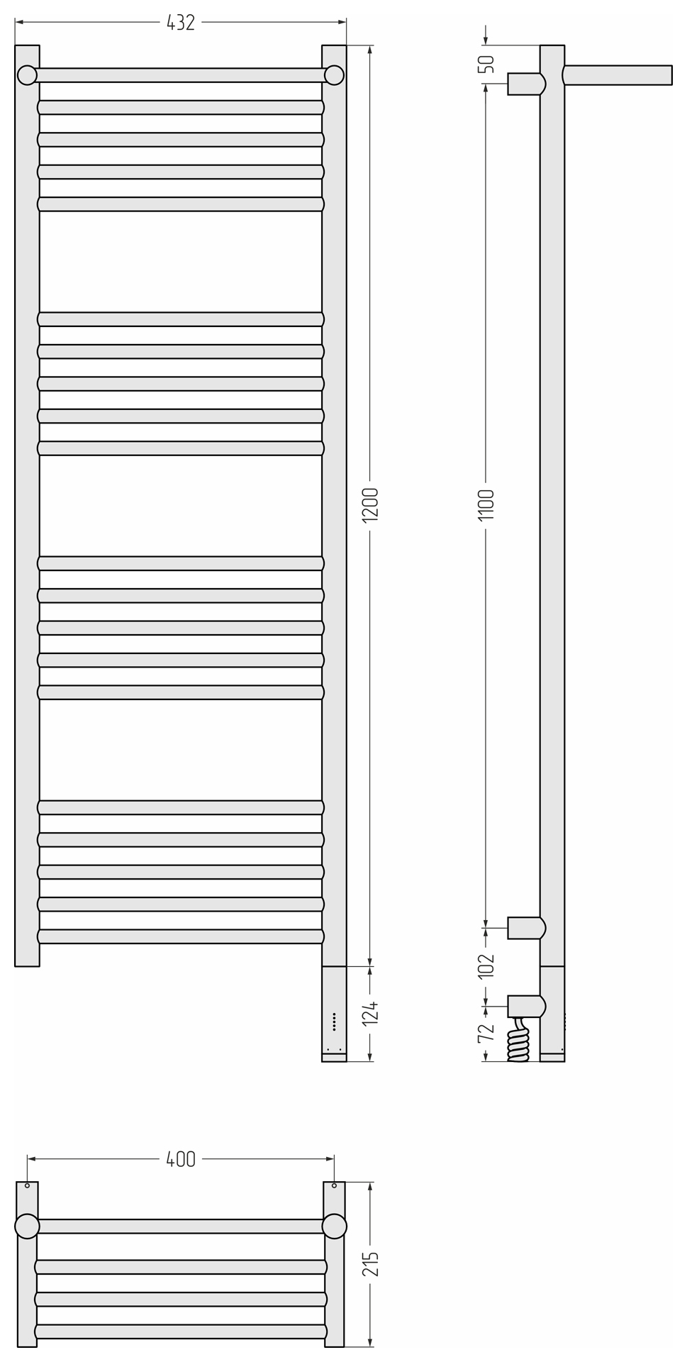 Полотенцесушитель электрический Сунержа Богема 3.1 с полкой П20 400x1320 мм 15-6007-1240 R, тёмный титан муар