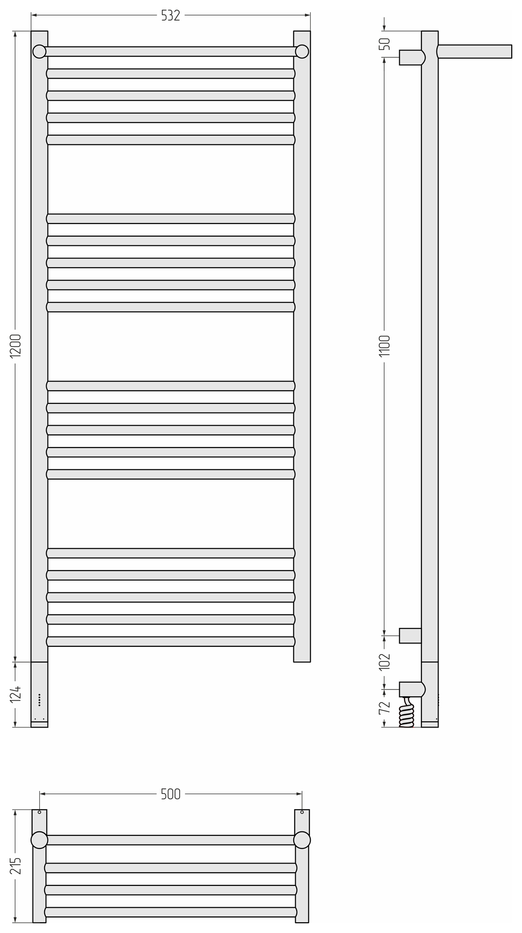 Полотенцесушитель электрический Сунержа Богема 3.1 с полкой П20 500x1320 мм 30-6006-1250 L, белый матовый