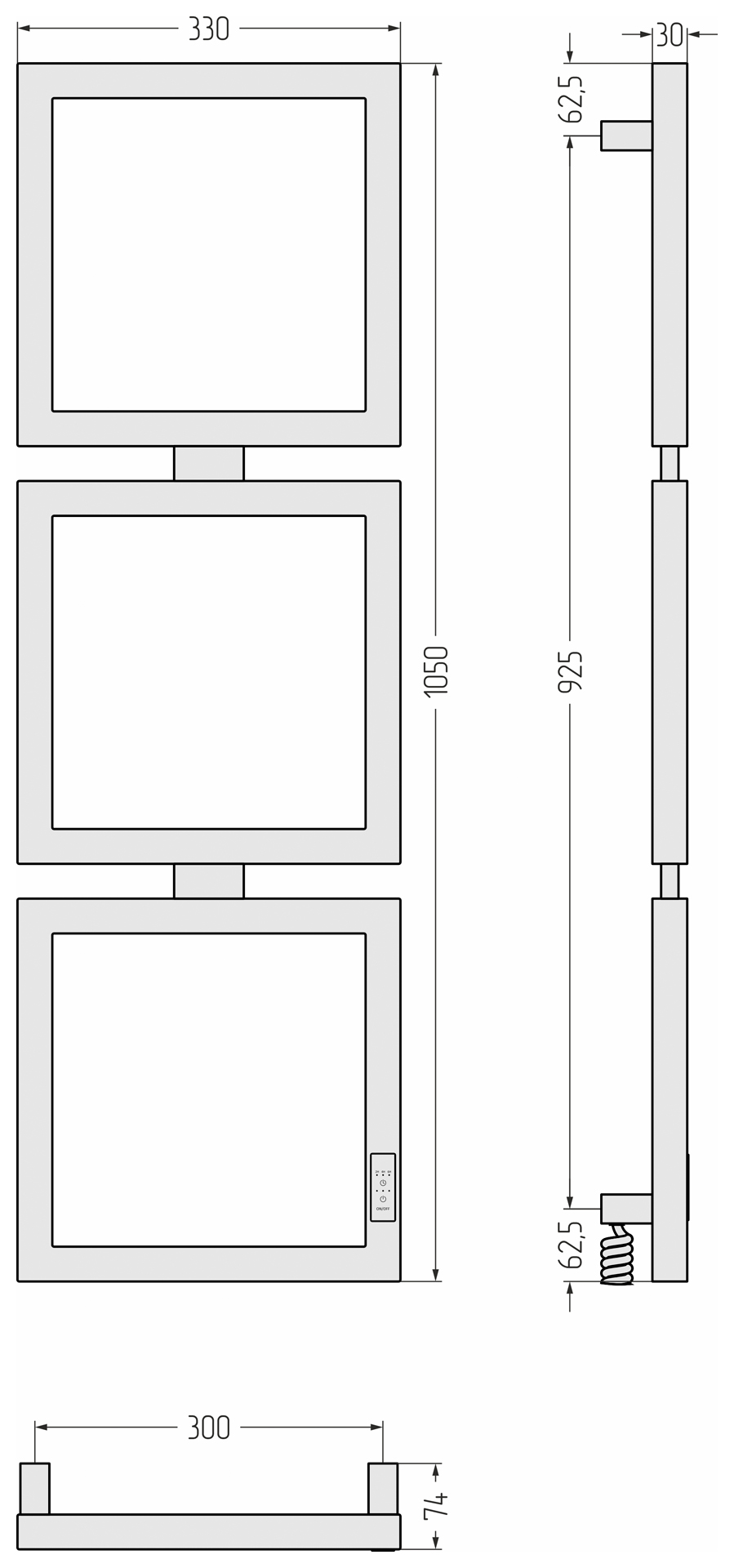 Полотенцесушитель электрический Сунержа Этюд П6 300x1050 мм 30-0844-1030 L, белый матовый