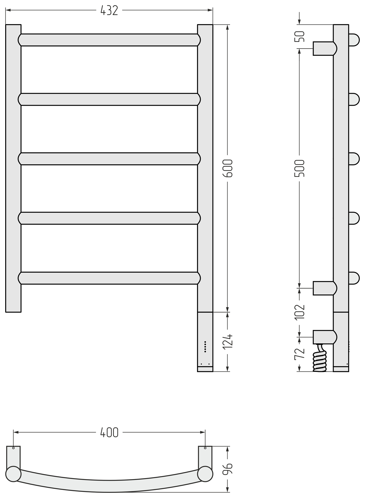 Полотенцесушитель электрический Сунержа Галант 3.1 П5 400x720 мм 31-6001-6040 R, чёрный матовый