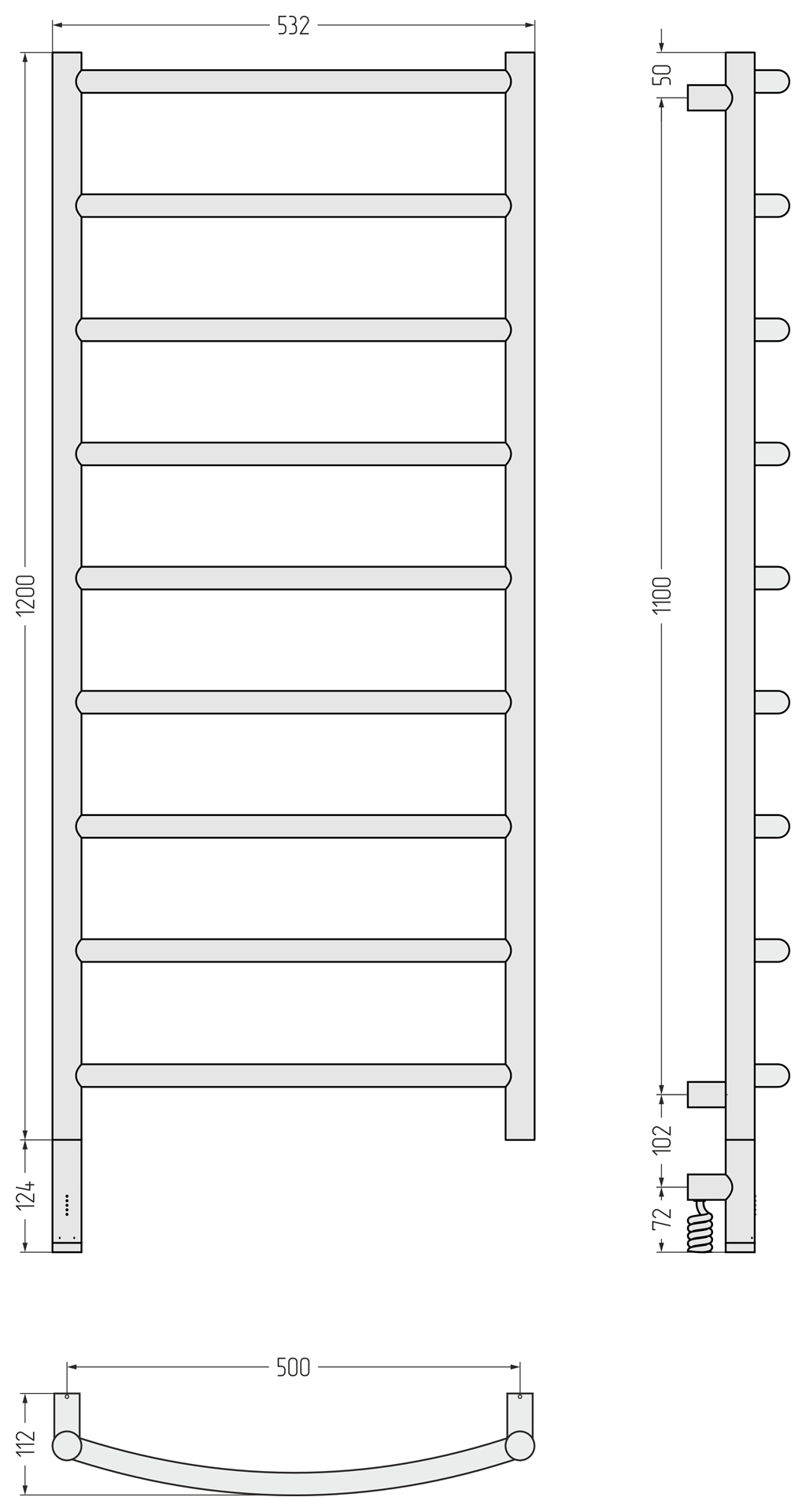 Полотенцесушитель электрический Сунержа Галант 3.1 П9 500x1320 мм 15-6000-1250 L, тёмный титан муар