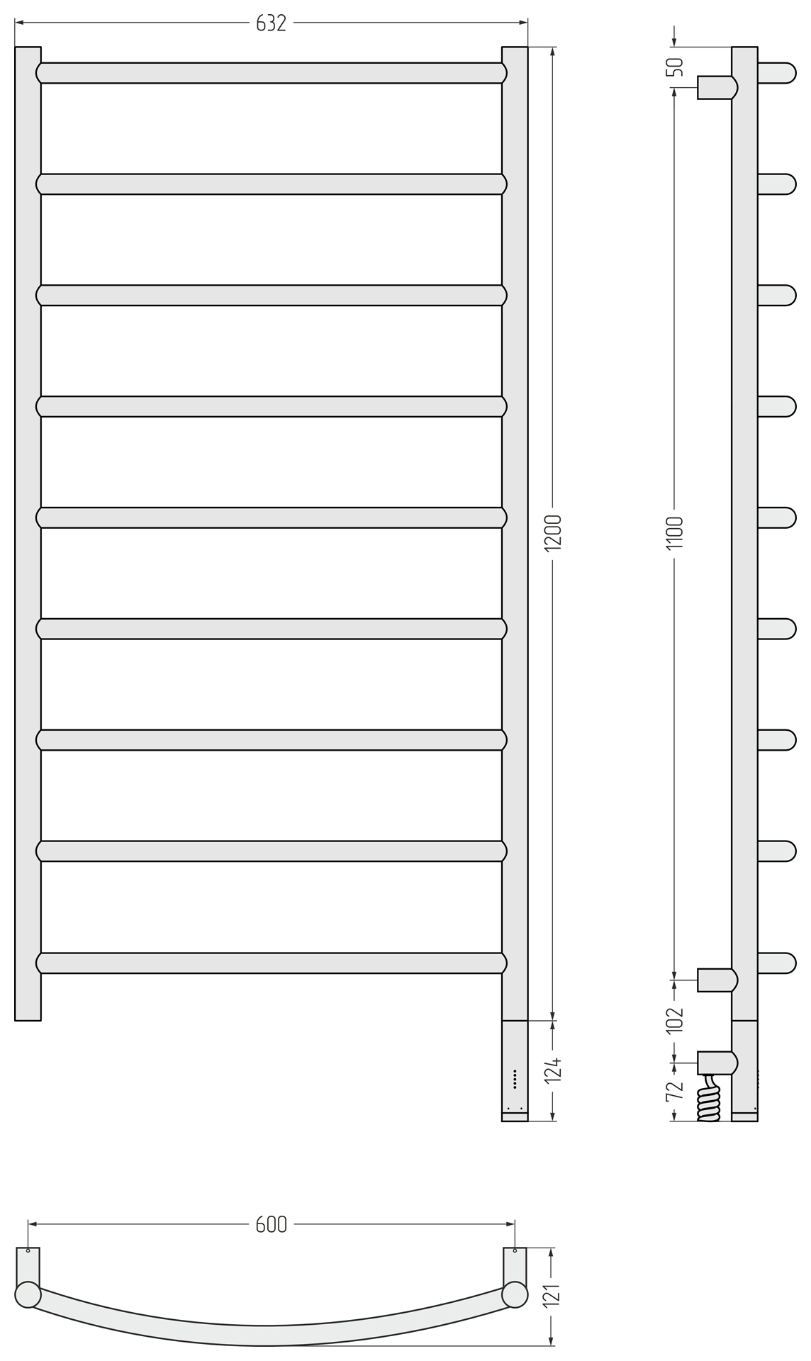 Полотенцесушитель электрический Сунержа Галант 3.1 П9 600x1320 мм 30-6001-1260 R, белый матовый